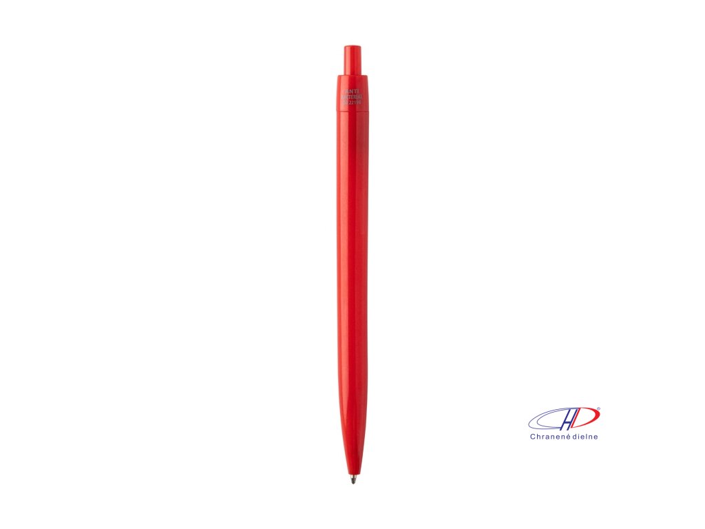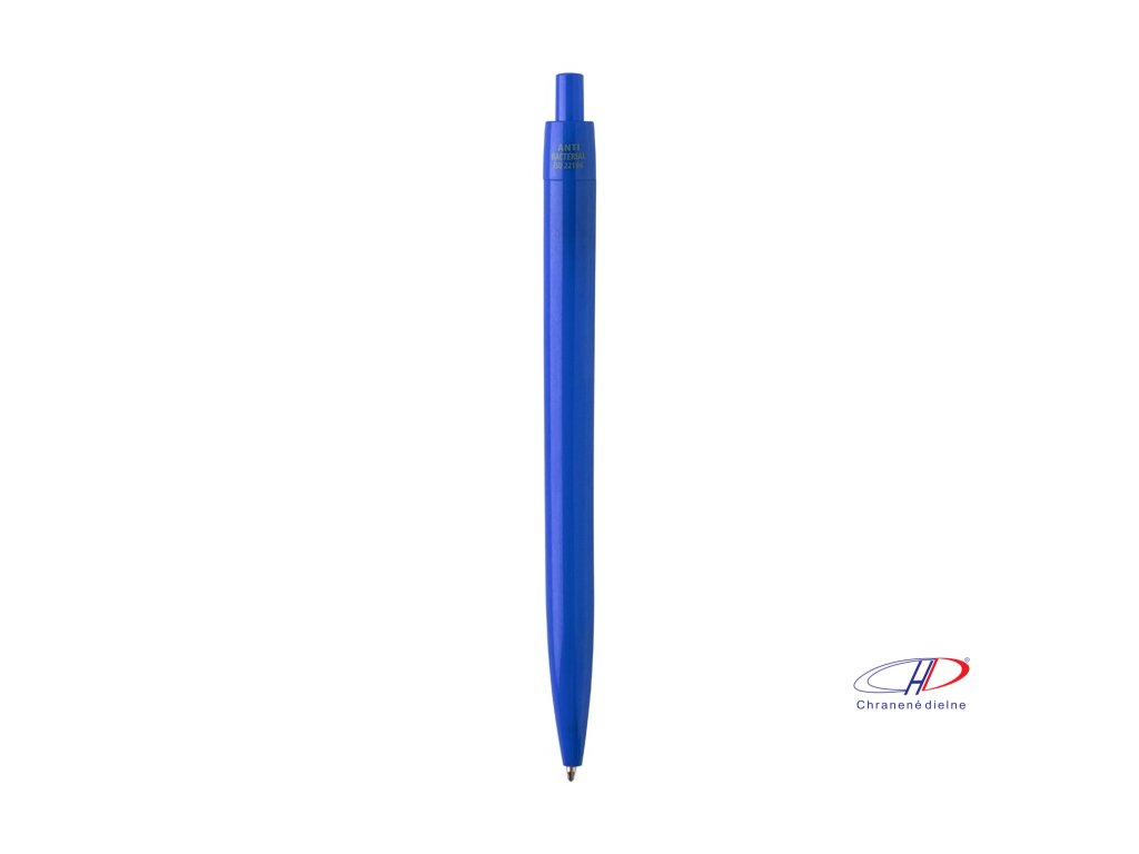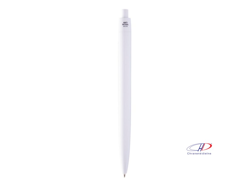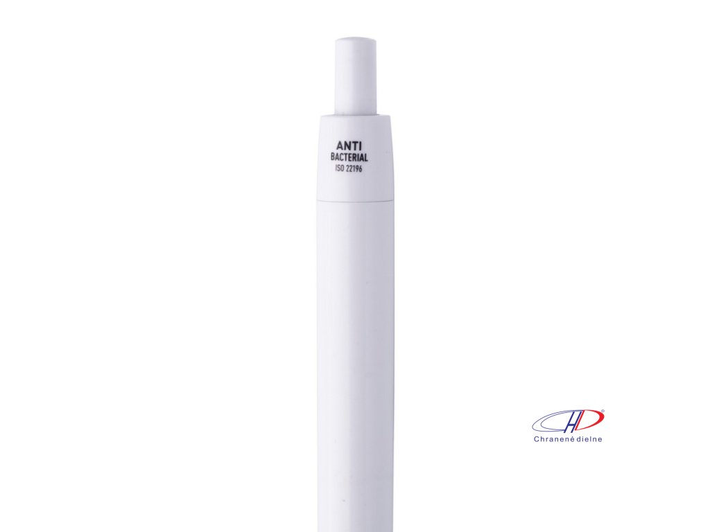 Plastové pero s antibakteriálnym telom. Obsahuje prísadu nano striebra, ktorá zabraňuje rastu baktérií na tele pera. So stláčacím mechanizmom a modrou náplňou. V súlade s ISO 22196: 2011.