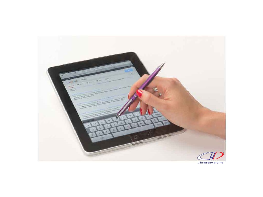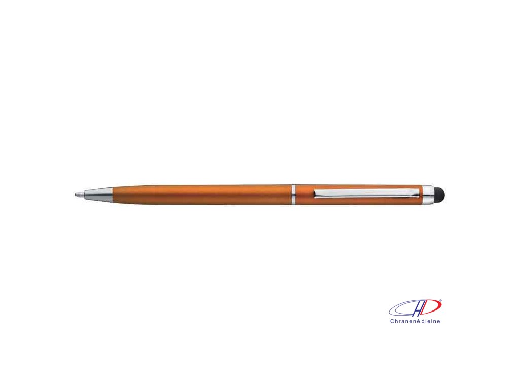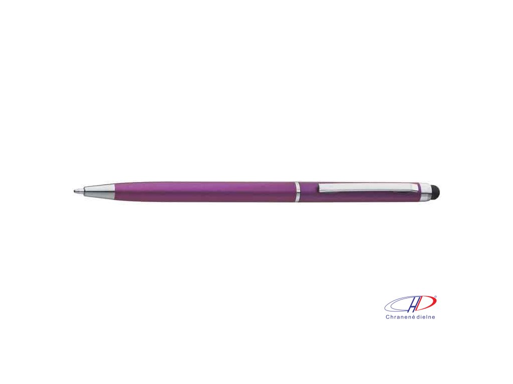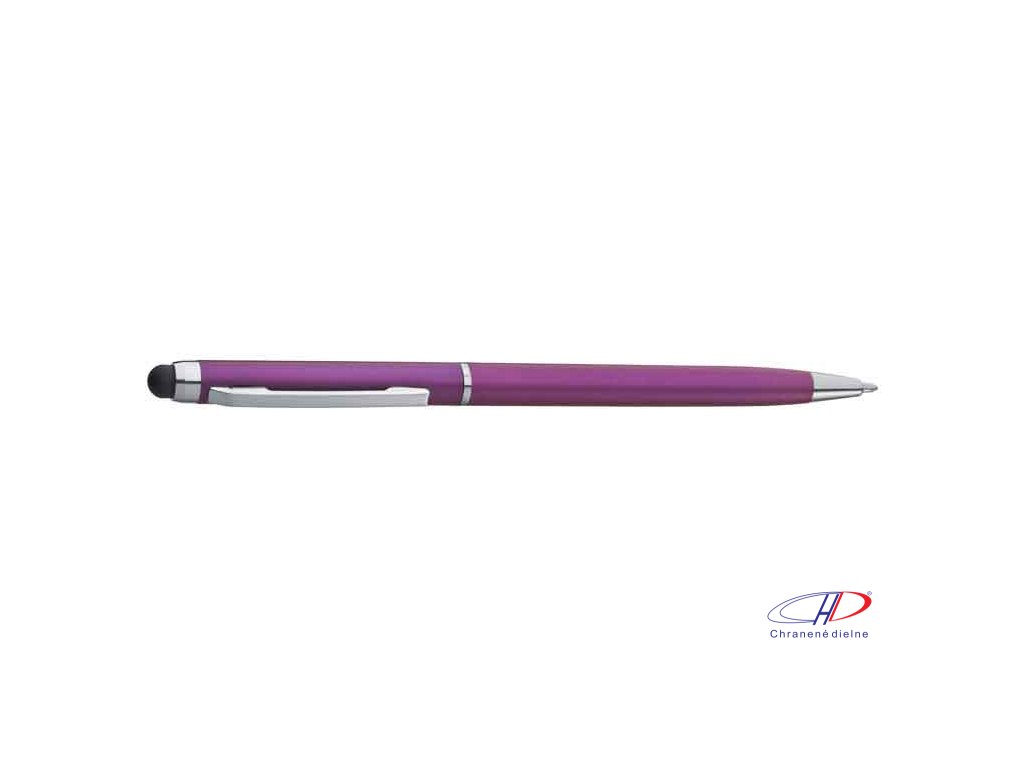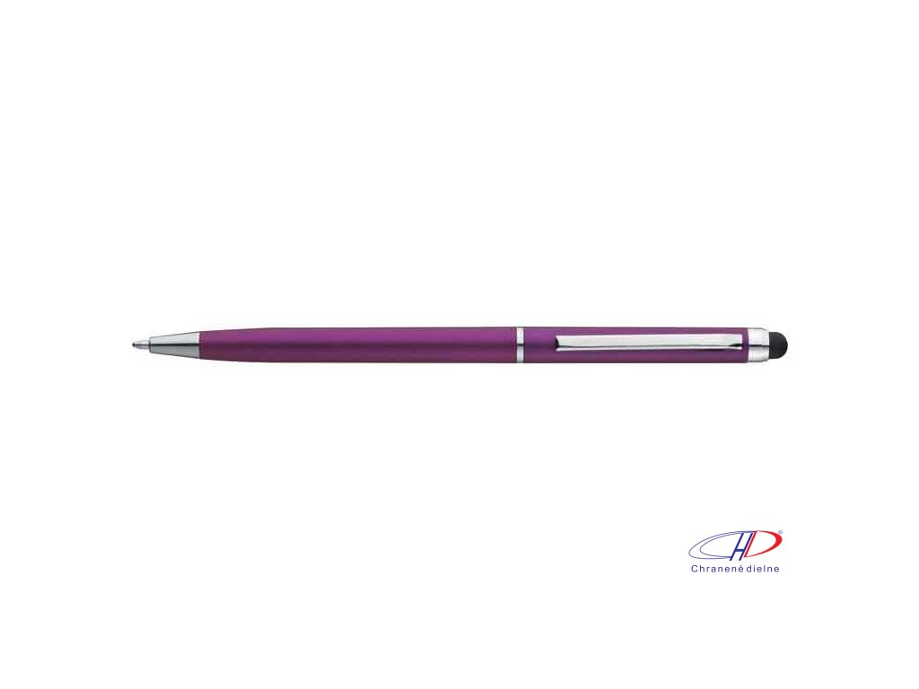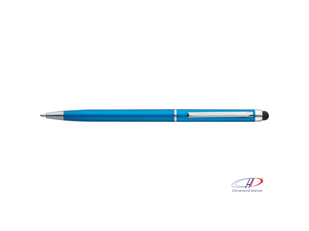 Plastové guľôčkové pero v elegantnom tenkom vyhotovení s modrou tuhou a s modernou dotykovou funkciou na ovládanie všetkých dotykových displejov.Dodatočné parametre