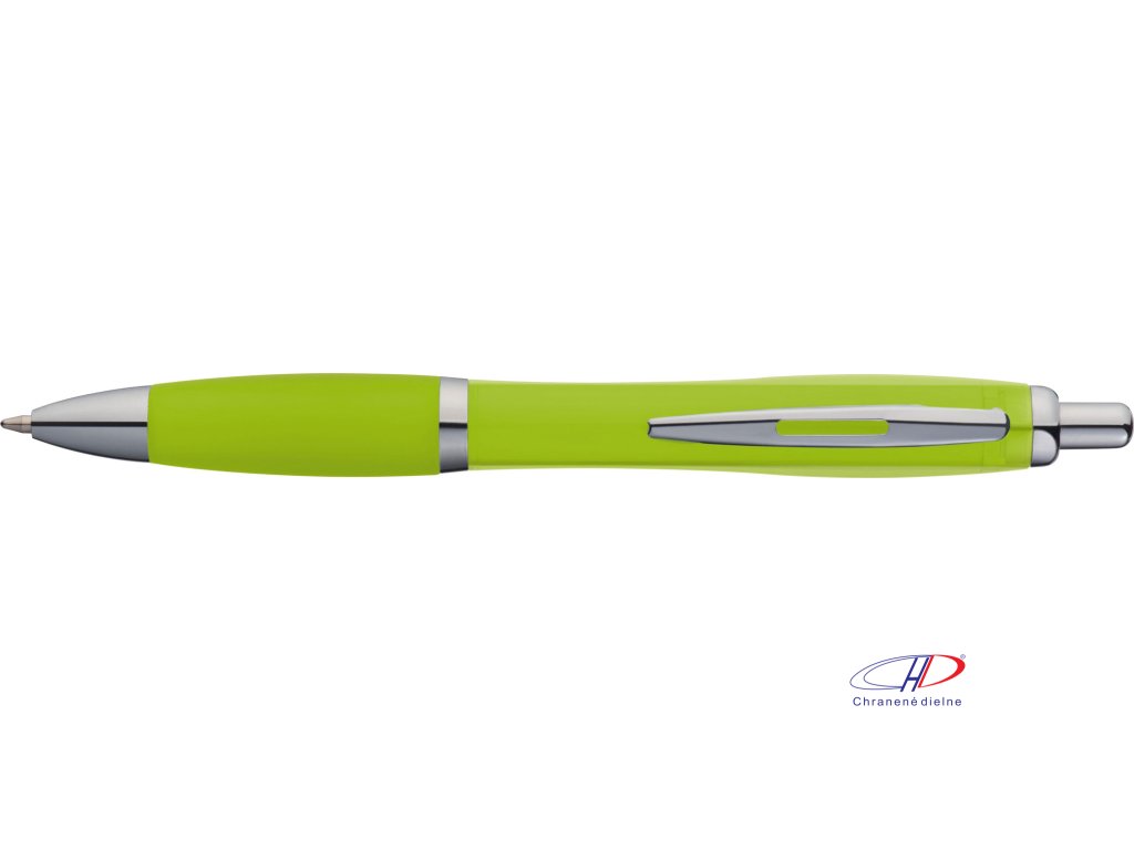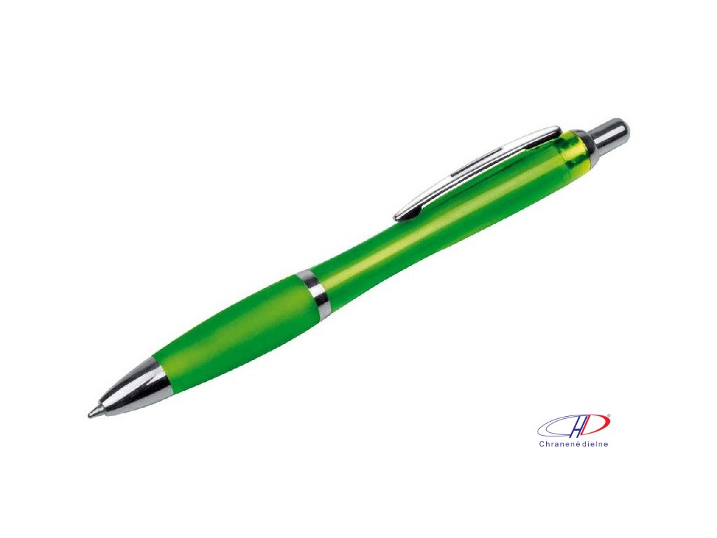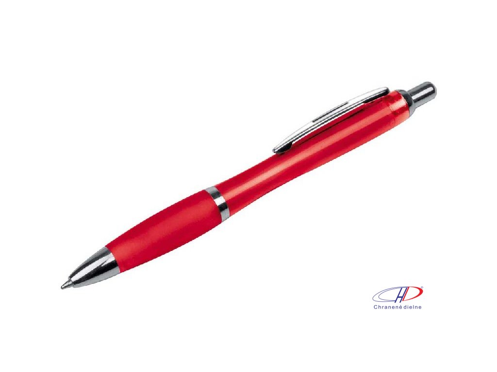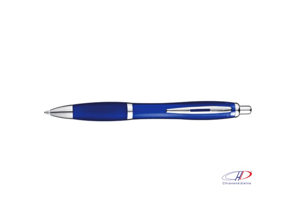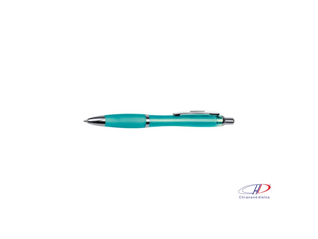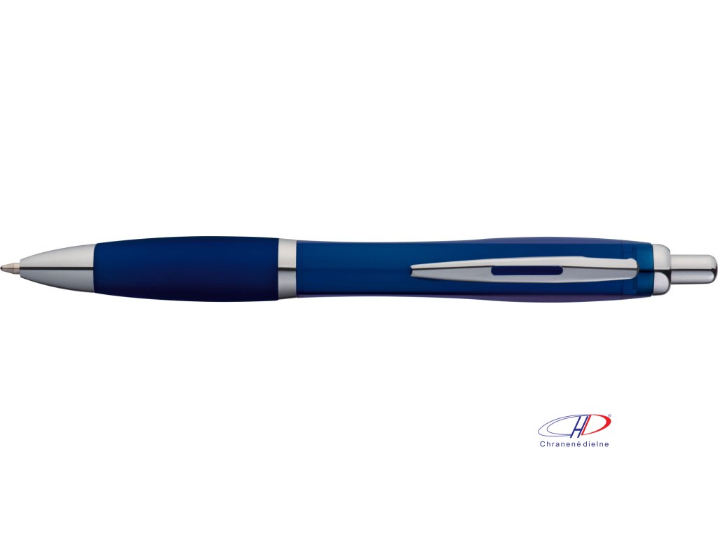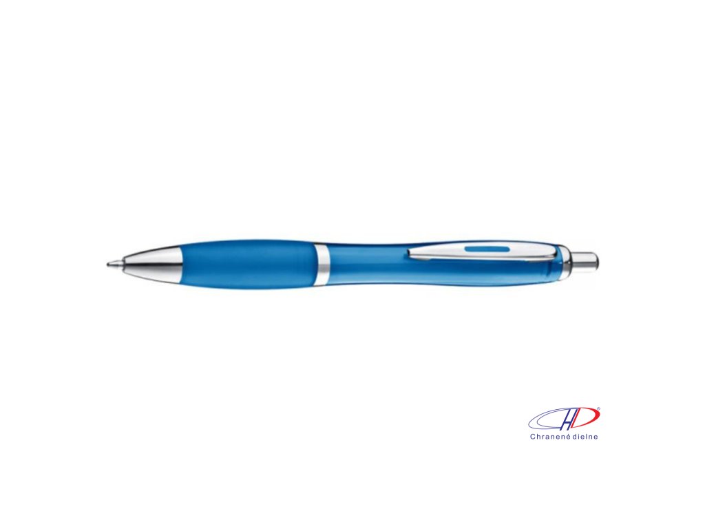 Plastové guľôčkové pero s ergonomickou úchopovou zónou a veľkokapacitnou modrou náplňou pre plynulé písanie. Telo pera je transparentné.