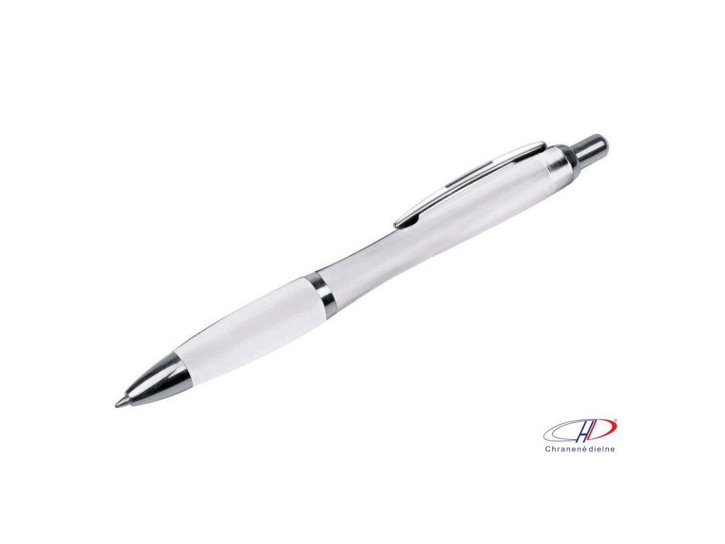 Plastové guľôčkové pero s modrým atramentom.
