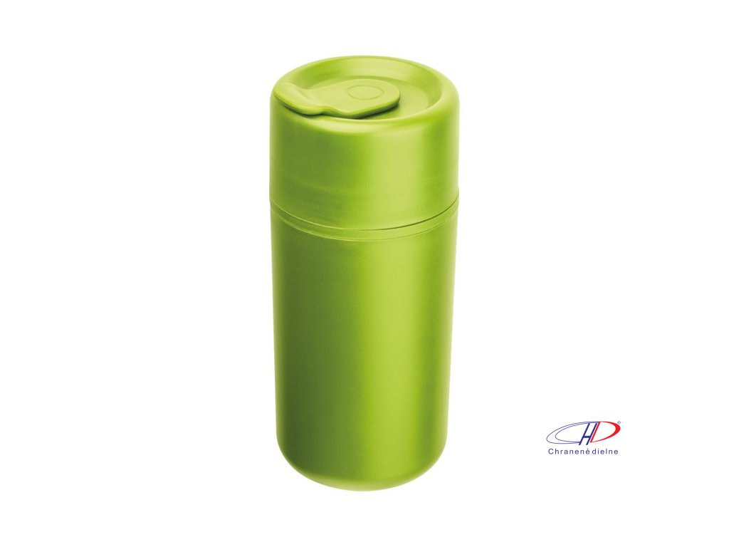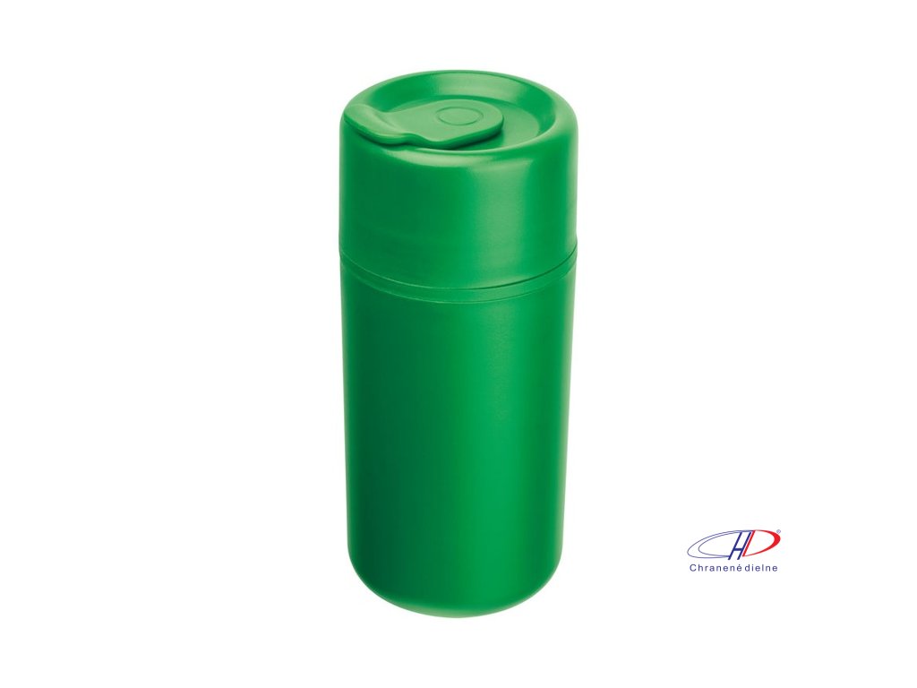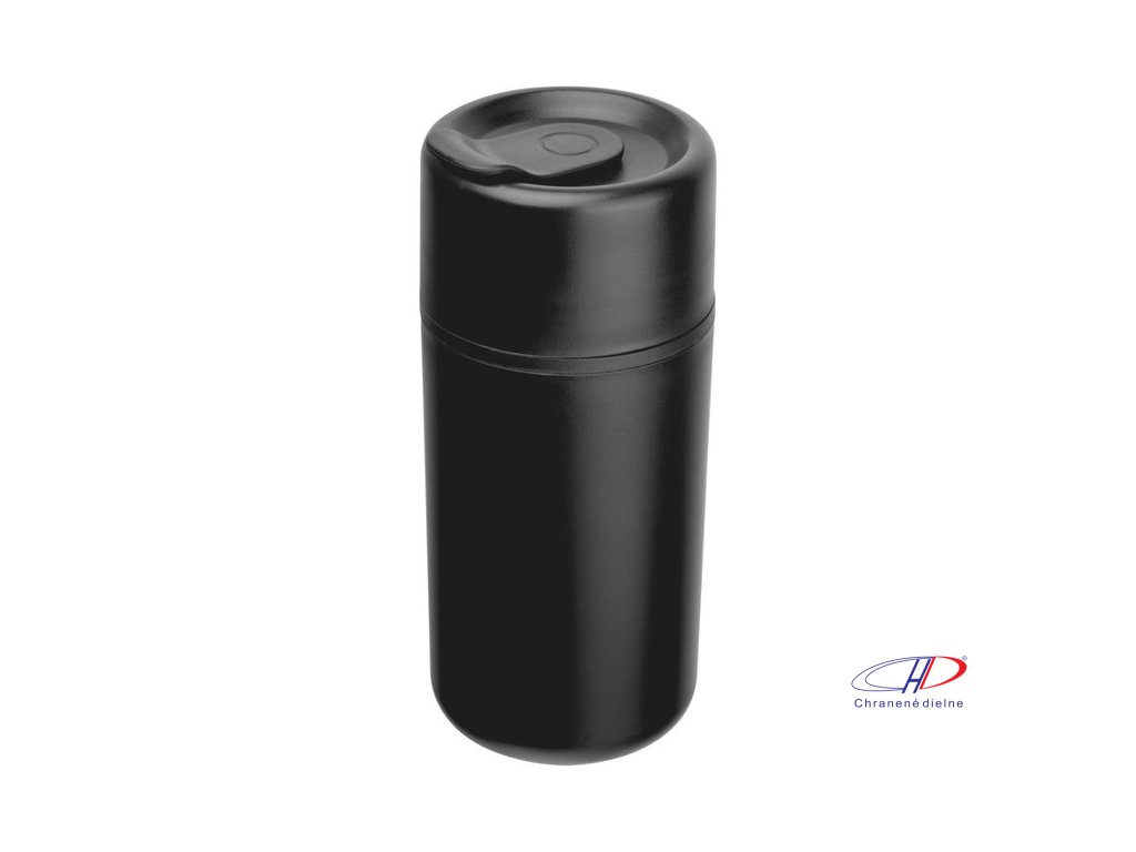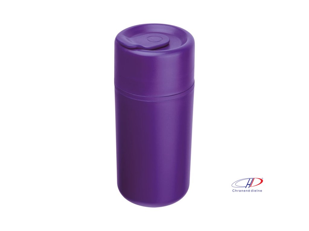 Dvojstenný pohár na pitie vyrobený z polypropylénu s objemom 500 ml, vybavený posuvným viečkom na pitie.Dodatočné parametre