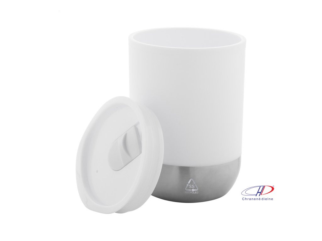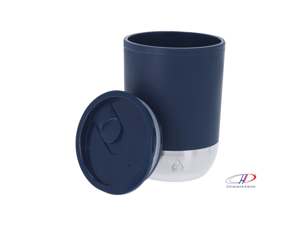Dvojstenný termo hrnček s PP plastovou izoláciou s dnom z recyklovanej nerezovej ocele a viečkom na pitie. 300 ml.Dodatočné parametre