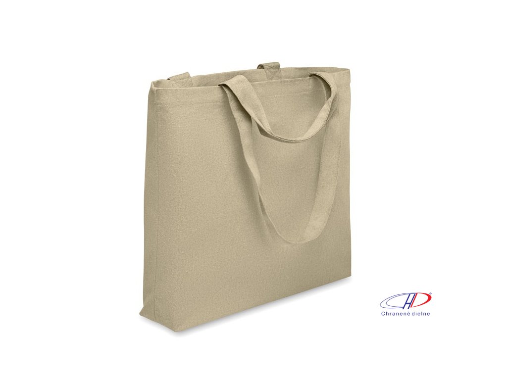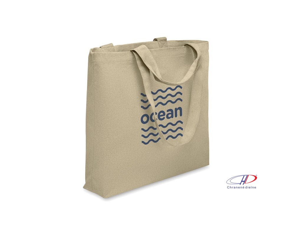 Nákupná/plážová taška z recyklovaných látok (60 % recyklovaná bavlna, 40 % recyklovaný polyester) s krátkymi a dlhými rúčkami. 320 g/m2.Dodatočné parametre