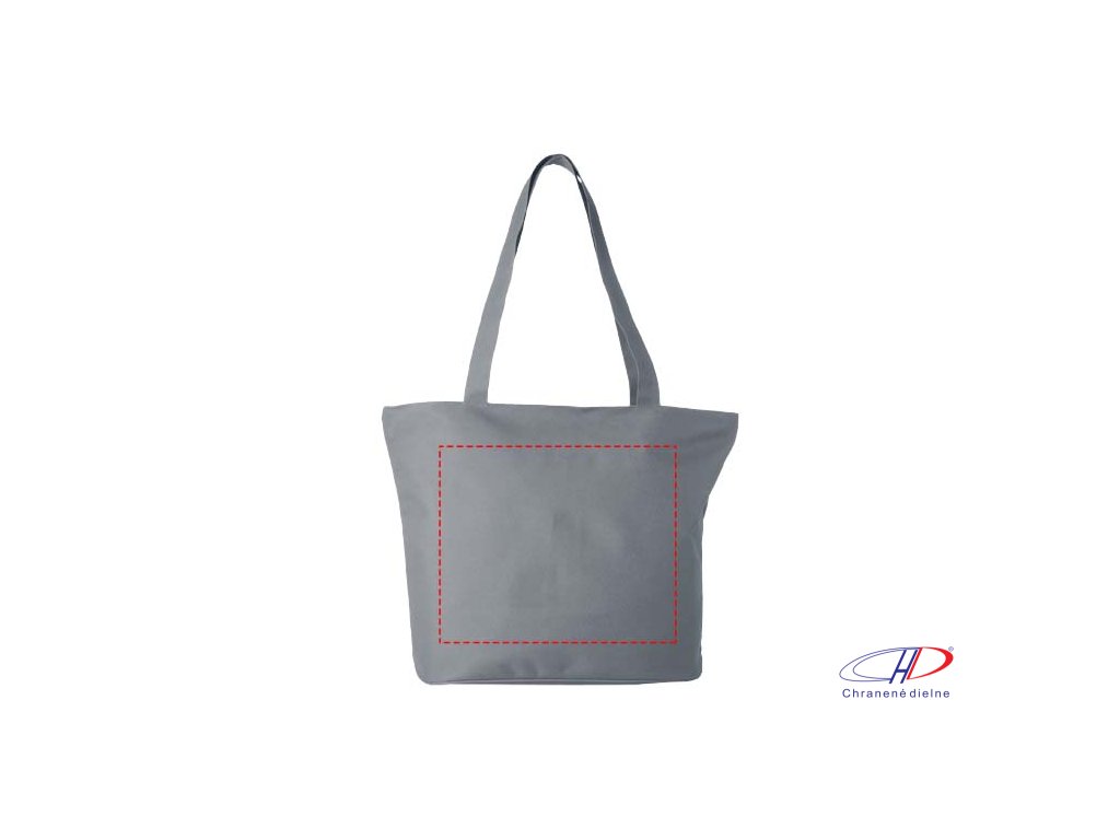 Viacúčelová taška s hlavným priestorom na zips, vnútorné vrecko na zips. Nosná výška popruhov 34 cm. Polyester 600D.