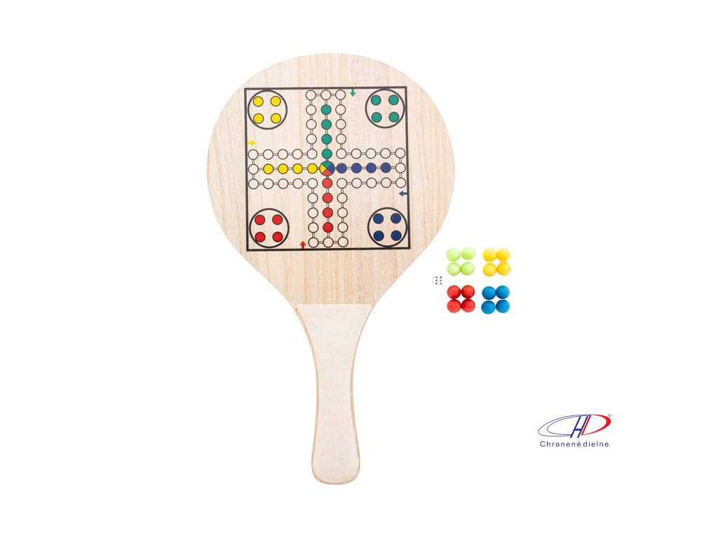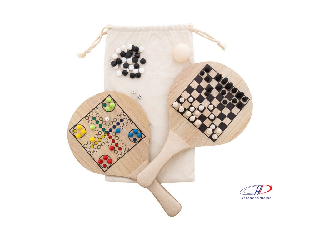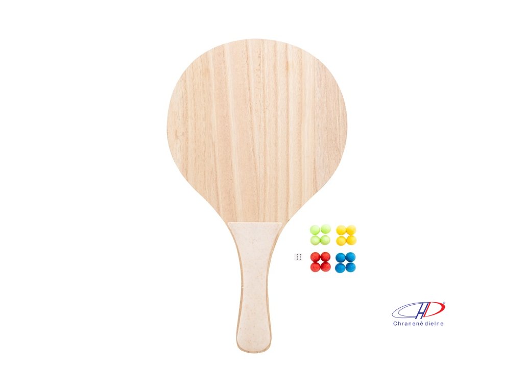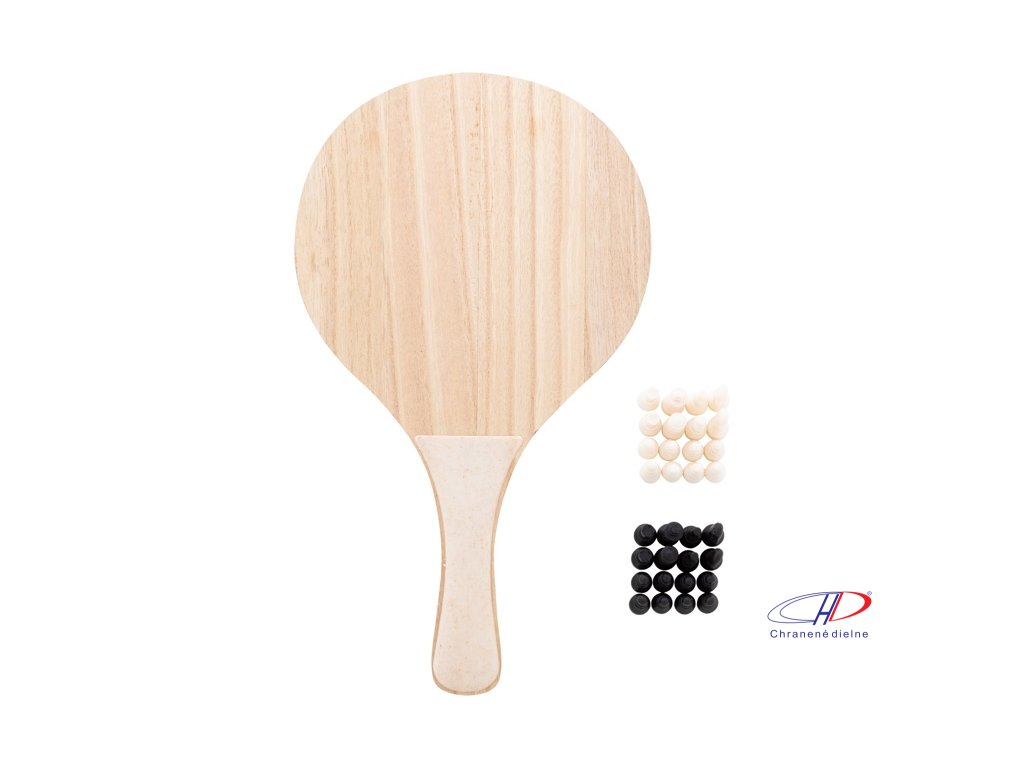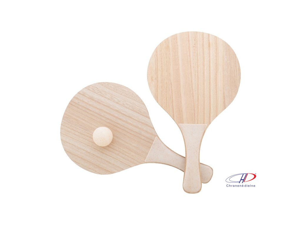 Plážový tenisový set z dreva a ekologického plastu z pšeničnej slamy s 2 raketami a jednou loptičkou. Vrátane 3 doskových hier, ktoré je možné hrať na raketách.Dodatočné parametre