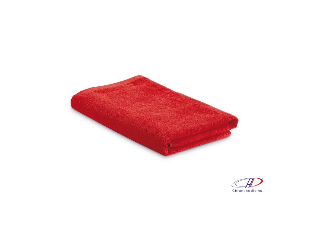 Cotton velvot beach towel (320 g/m?) supplied in a non-woven bag (80 g/m?).