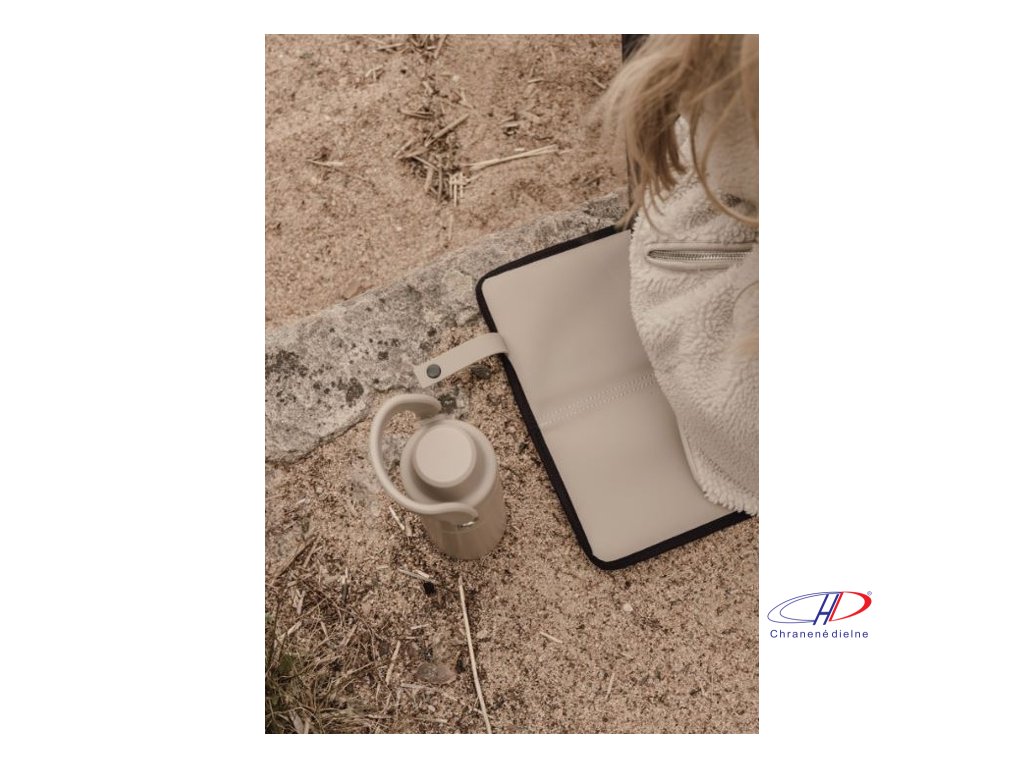 4-panelový dizajn pre jednoduché zloženie a prenášanie, vodeodolná spodná vrstva z PEVA. Vybavená praktickým popruhom so zapínaním, ktorý umožňuje pripevniť podložku na tašku. Veľkosť 40x30 cm. Obsahuje 24 % RCS-certifikovaného RPET.Dodatočné parametre