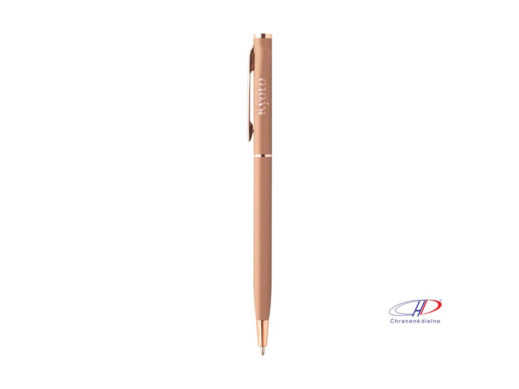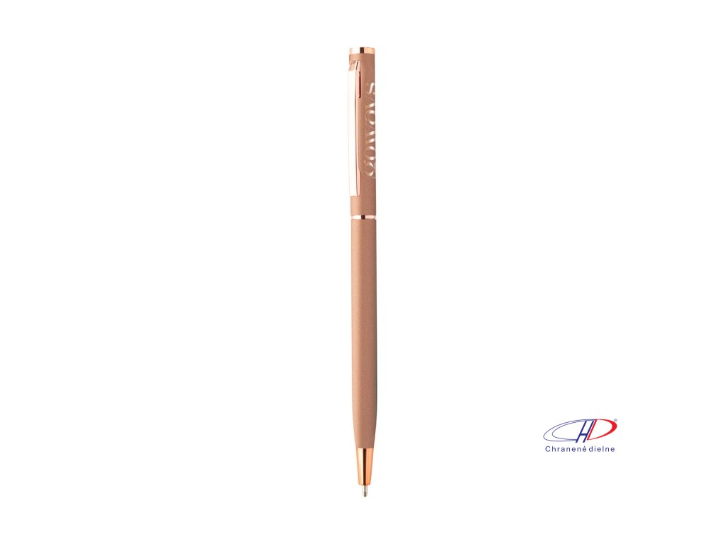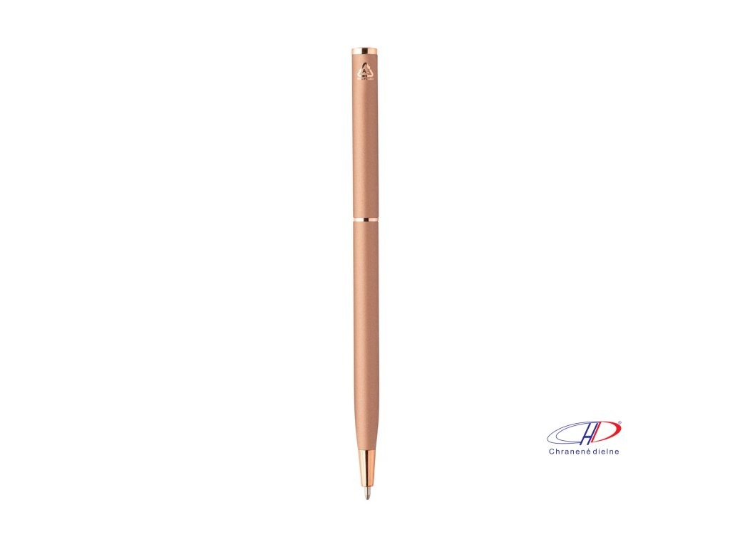 Guľôčkové pero z recyklovaného hliníka s pogumovaným povrchom a detailmi z ružového zlata. So špeciálnou povrchovou úpravou pre zrkadlové laserové gravírovanie vo farbe ružového zlata.Dodatočné parametre