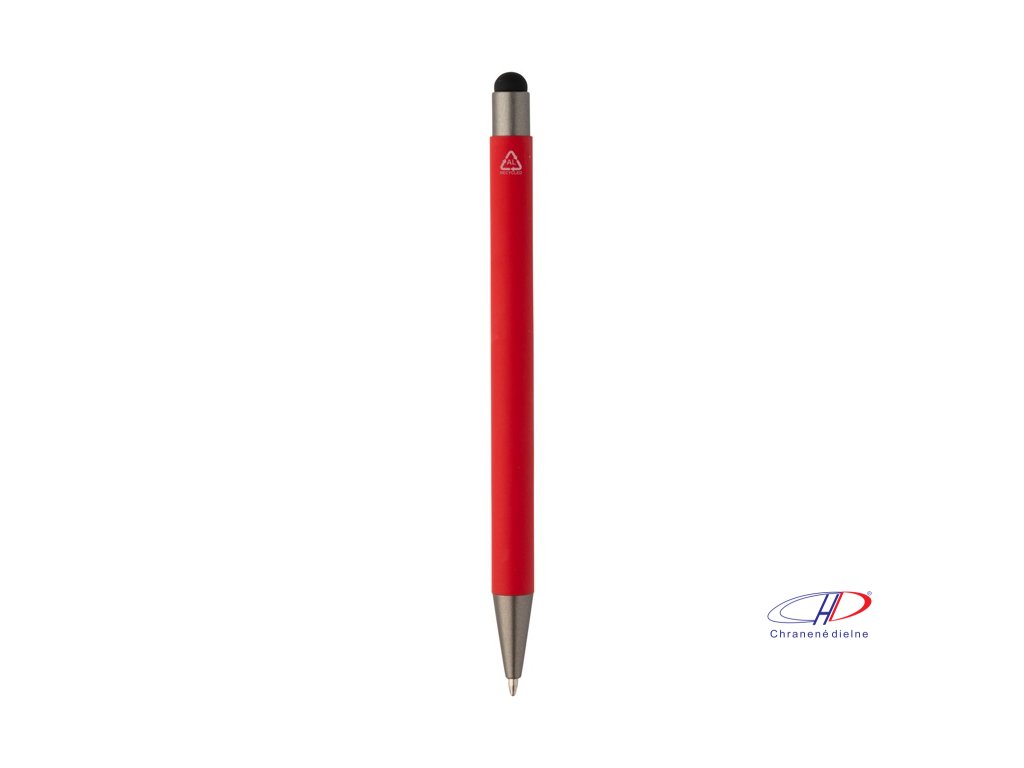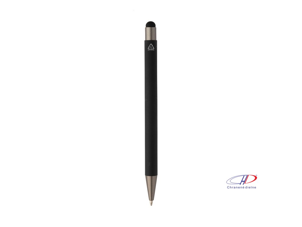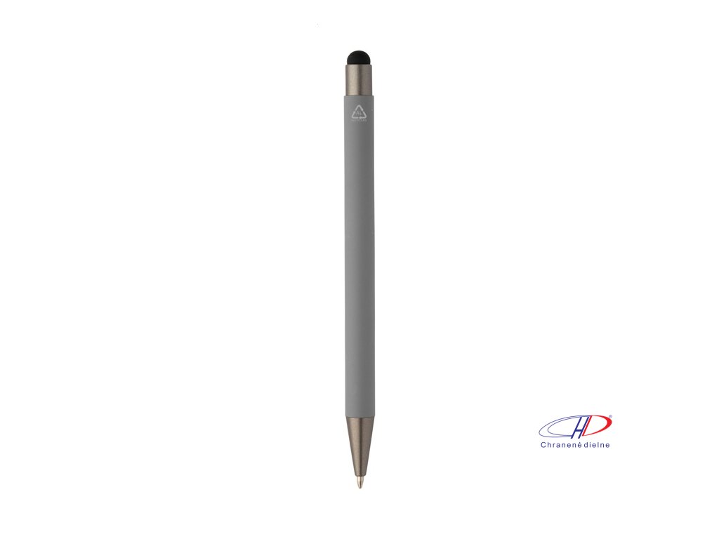 Guľôčkové pero a dotykové pero z recyklovaného hliníka s pogumovaným telom a kovovými časťami.Dodatočné parametre