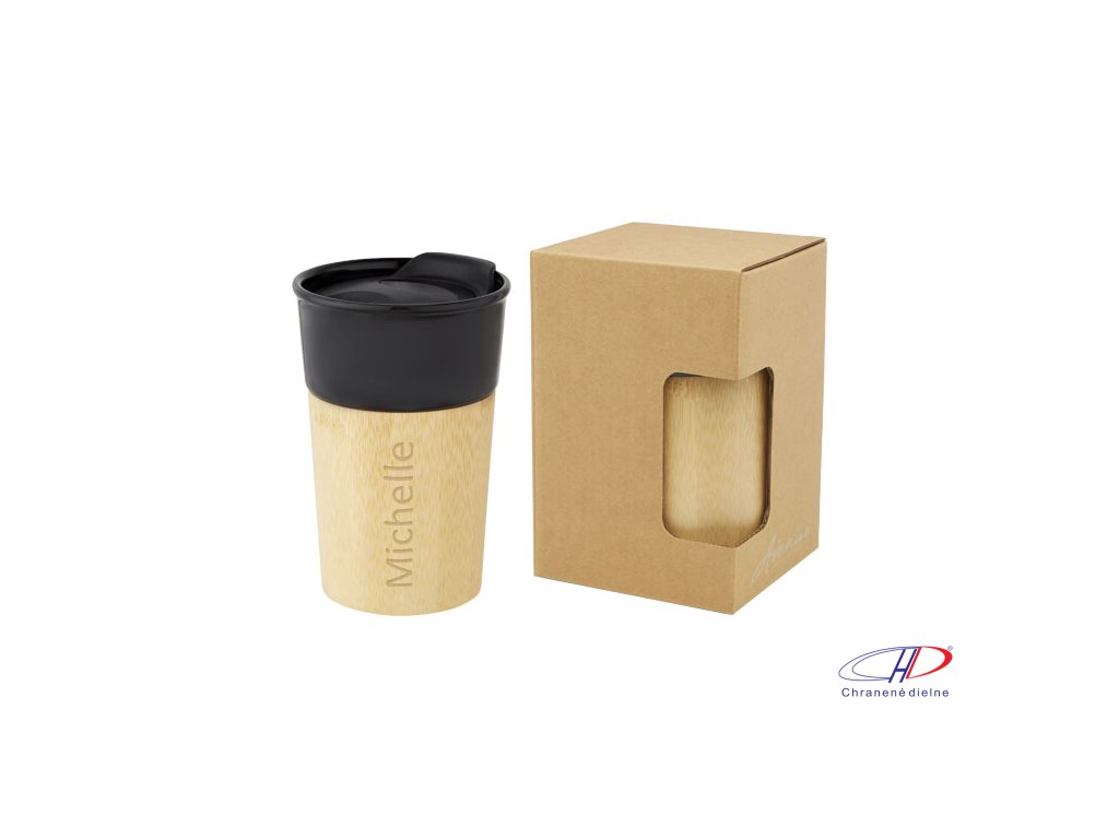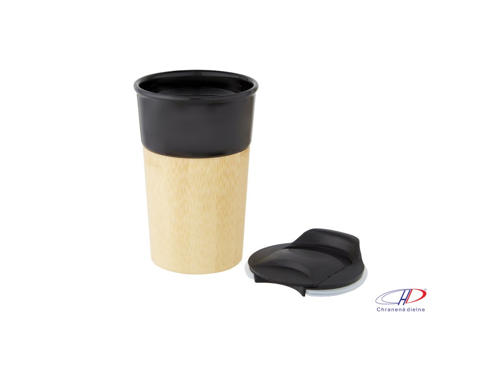 Štýlový porcelánový hrnček s vonkajšou vrstvou z organického bambusu, ktorý poskytuje prirodzený vzhľad a pohodlné uchopenie. Vybavený je protišmykovým viečkom odolným proti rozliatiu a neobsahuje BPA. Objem je 320 ml. Neodporúča sa umývať v umývačke.Dodatočné parametre