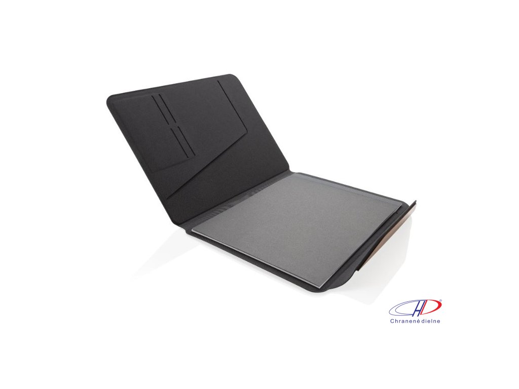 Magnetické zapínanie, 4 priehradky na vizitky a vrecko na dokumenty A4. Priložený poznámkový blok formátu A4, vyrobený zo zmiešaného papiera FSC® poskytuje 30 strán linkovaného papiera krémovej farby (70 g/m2). Darčekové balenie. AWARE™. Neobsahuje PVC.Dodatočné parametre