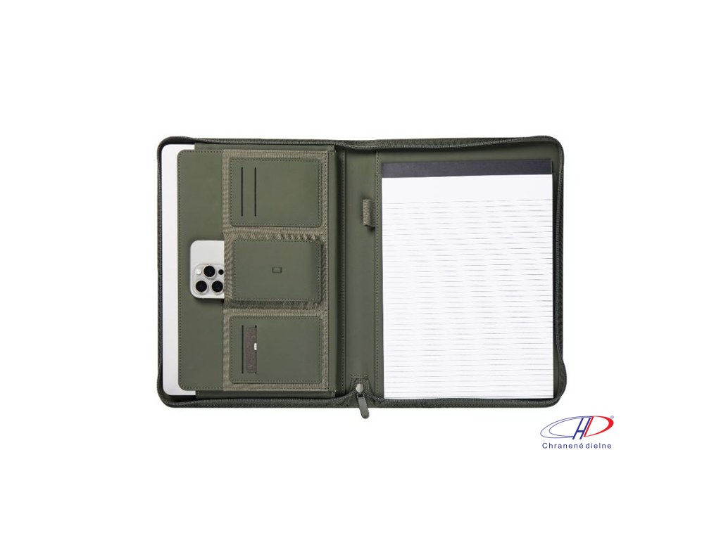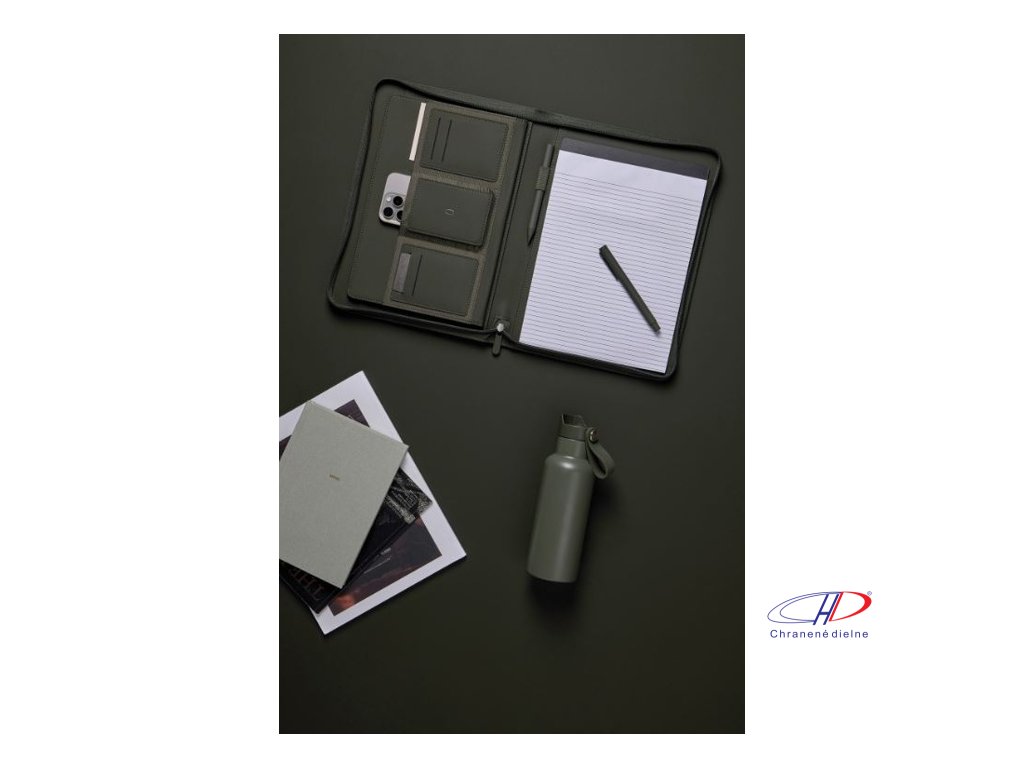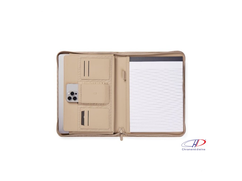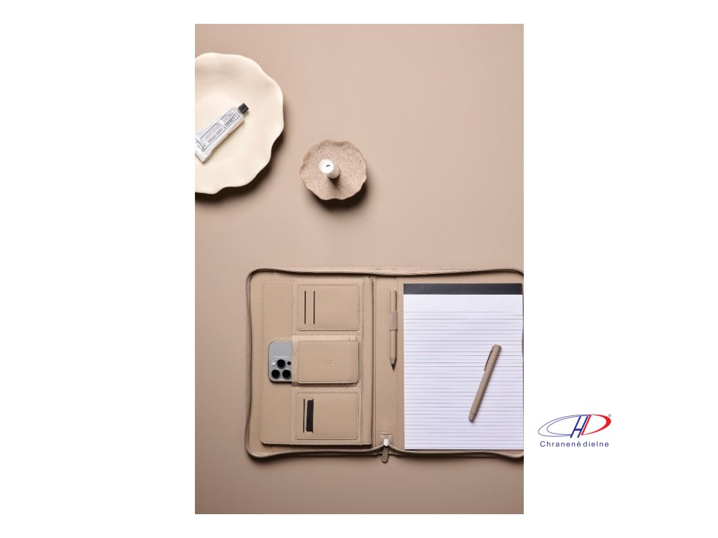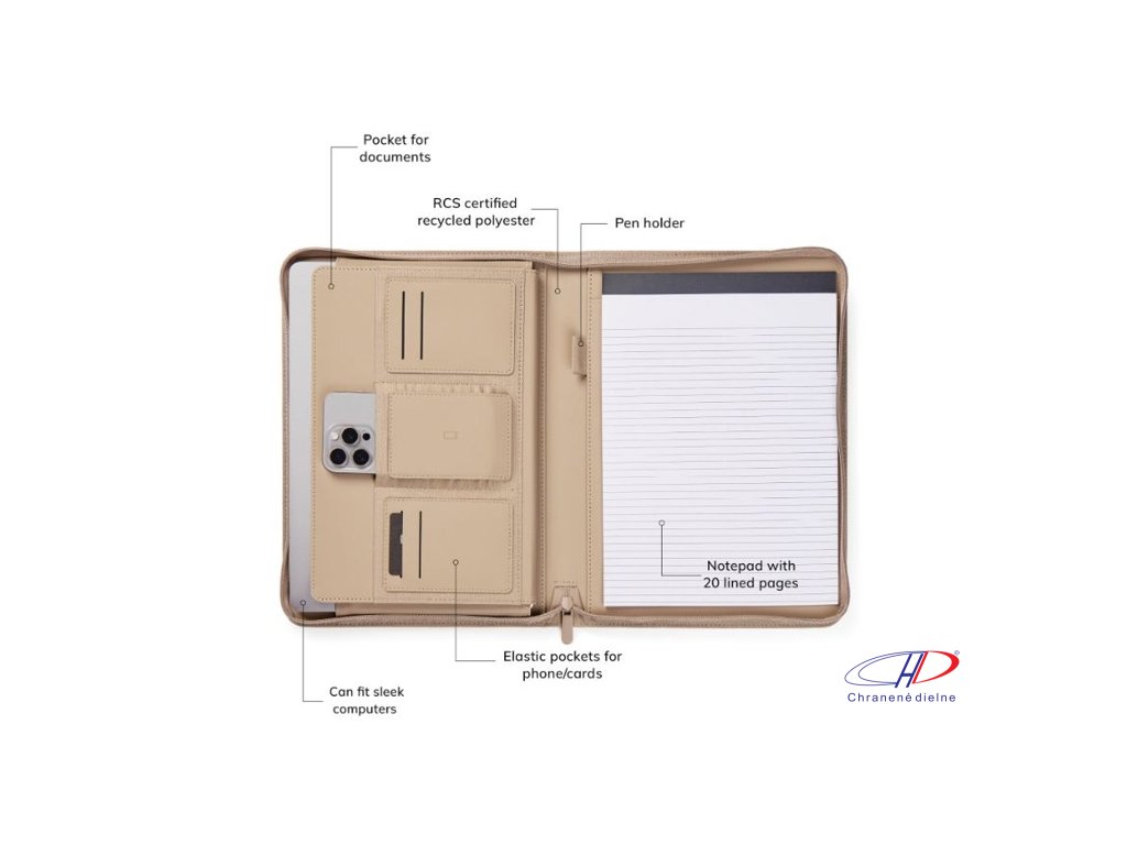 Portfólio A4 je vybavené držiakom na pero, vreckom na papier, vreckami na karty, telefón a poznámkovým blokom s 20 linkovanými stránkami. Papierová vložka je vymeniteľná. Certifikácia RCS.Dodatočné parametre
