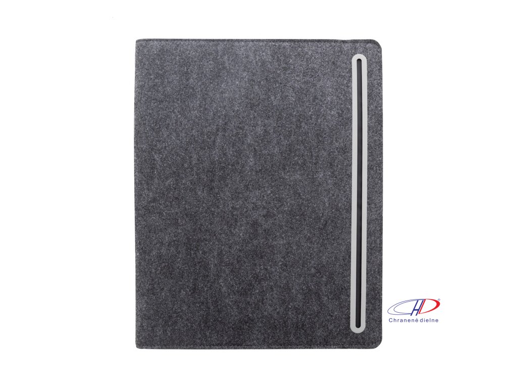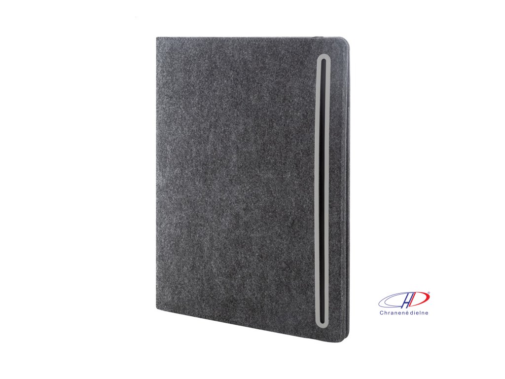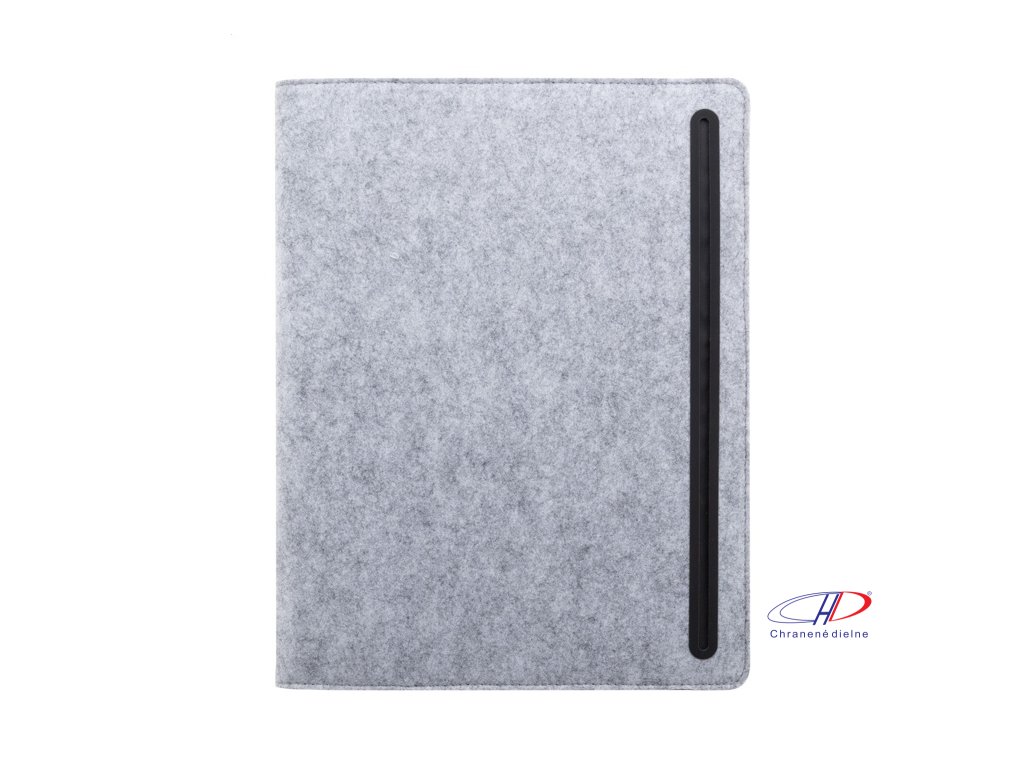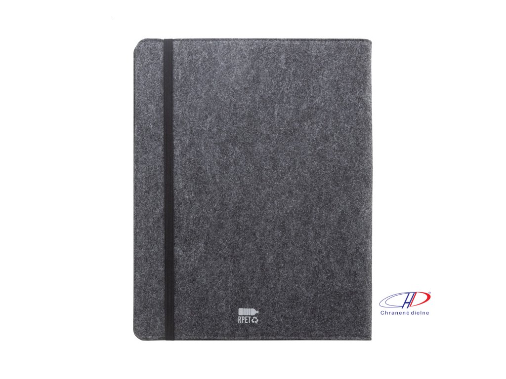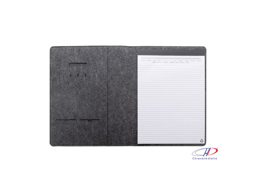 Plstená sloha A4 na dokumenty z RPET s prednými a niekoľkými vnútornými vreckami s organizérom. S 20 linajkovými listami poznámkového bloku z recyklovaného papiera.Dodatočné parametre