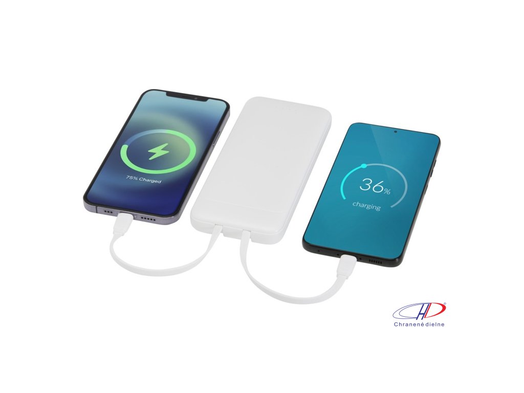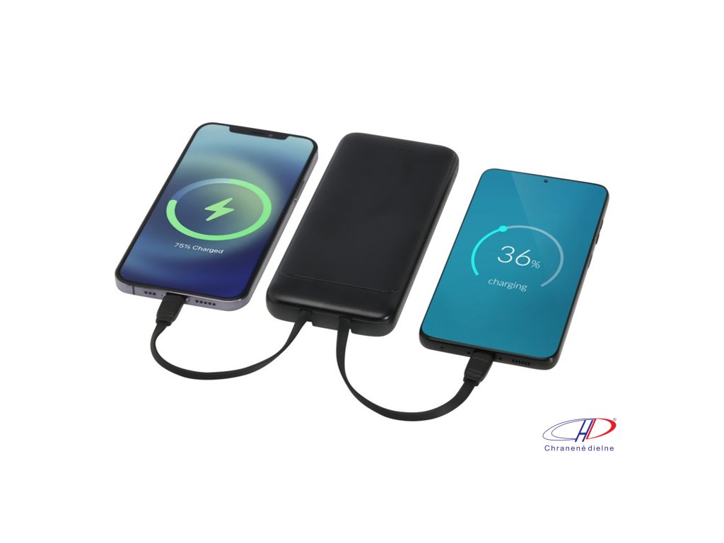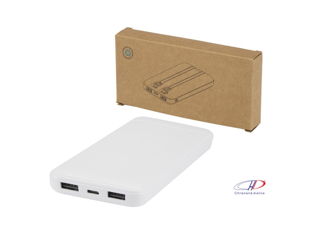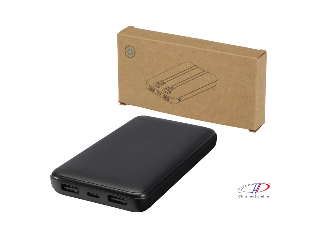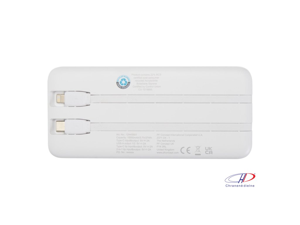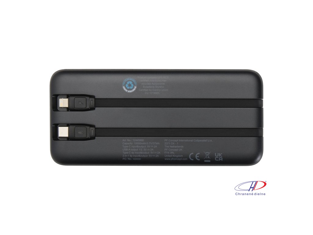 Powerbanka 10 000 mAh z recyklovaného plastu ponúka dva vstavané káble, kombinovaný kábel typu C a Lightning/microUSB, ako aj dva výstupy USB-A a vstup/výstup typu C pre všestranné nabíjanie. LED indikátor zobrazuje stav nabíjania.Dodatočné parametre