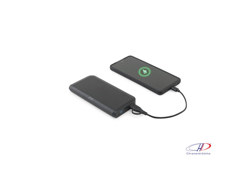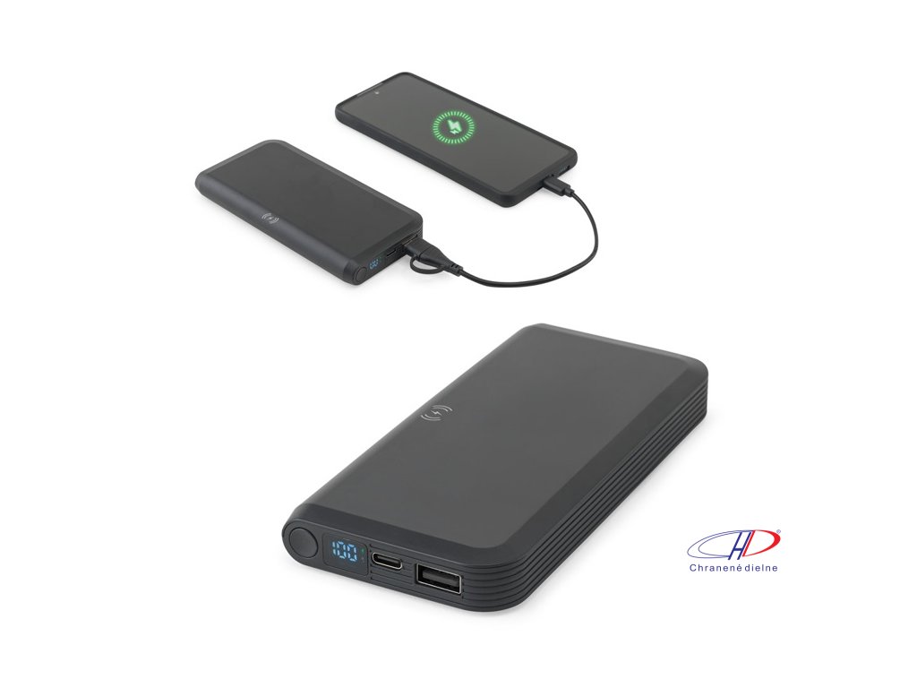 Powerbanka 10 000 mAh so superrýchlym bezdrôtovým nabíjaním 15W a integrovanou LED obrazovkou, ktorá zobrazuje úroveň nabitia. Vstup: USB-C (PD 20 W). Výstup: USB-C (PD 20 W) a USB-A (QC18 W). Vrátane kábla. Krabička z recyklovaného kraftového papiera.Dodatočné parametre