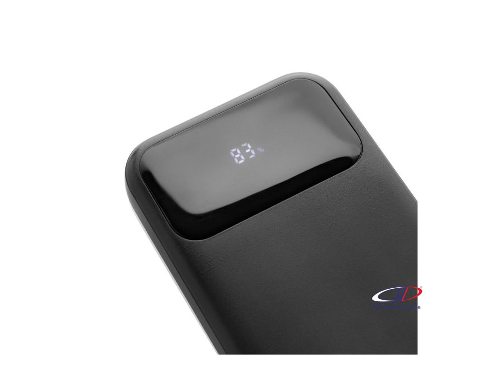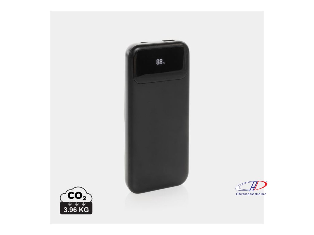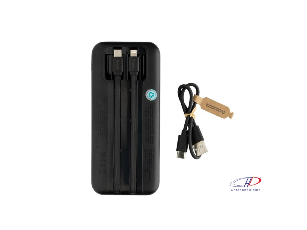 Rýchlonabíjacia powerbanka s integrovanými káblami (USB C a Apple Lightning) a digitálnym displejom. Dodatočné USB C a USB A porty na pripojenie vlastného kábla. Kvalitná lítium polymérová batéria triedy A 10 000 mAh. FSC kraftová krabička. Bez PVC.Dodatočné parametre