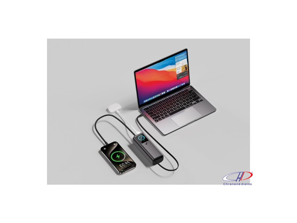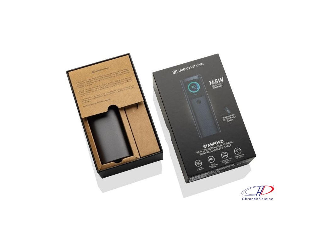 Powerbanka 20 000 mAh podporuje 165W rýchlonabíjanie. 3 výstupné porty: 2x USB-C a 1x USB-A. Integrovaný 70 cm zasúvací USB-C rýchlonabíjací kábel s výkonom 100W. Vysoko kvalitný TFT farebný displej poskytuje informácie o rýchlosti nabíjania. PVC free.Dodatočné parametre