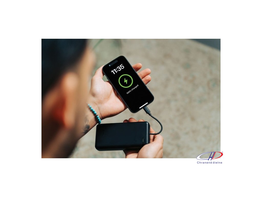Powerbanka s kapacitou 20 000 mAh. Duálny výstup USB, takže môžete nabíjať dve zariadenia súčasne. Jedno cez port typu C a druhé pomocou kábla typu C. Oba ponúkajú superrýchle nabíjanie až 20 W. PVC free.Dodatočné parametre