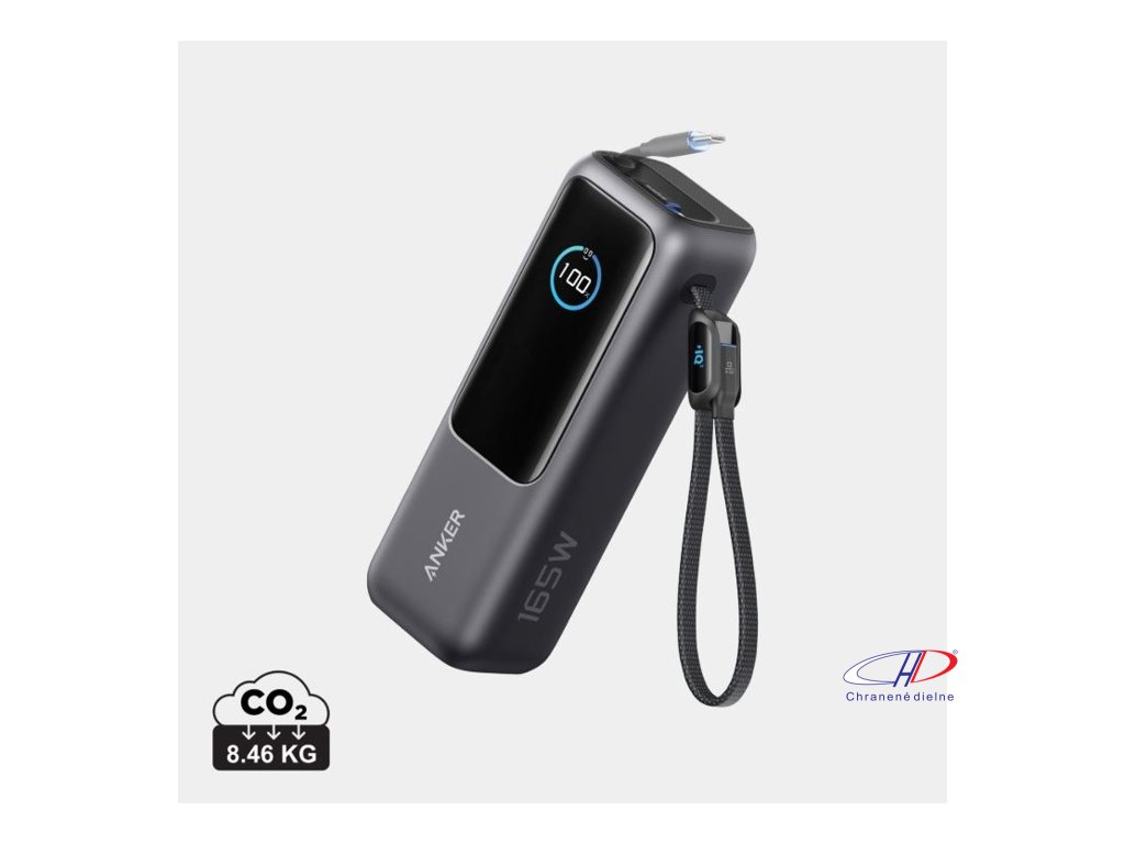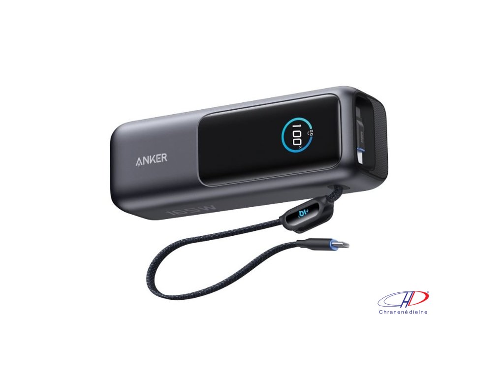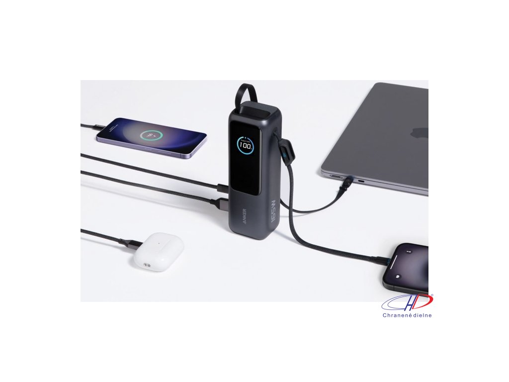 Powerbanka 25 000 mAh, 165W, so zabudovanými (pútko na prenášanie) a zasúvacími káblami. MacBook/iPhone nabije na 50% za 35 minút. Súčasne nabíjanie 4 zariadení. Inteligentný digitálny displej, technológia Anker ActiveShield 2.0 pre bezpečné nabíjanie.Dodatočné parametre