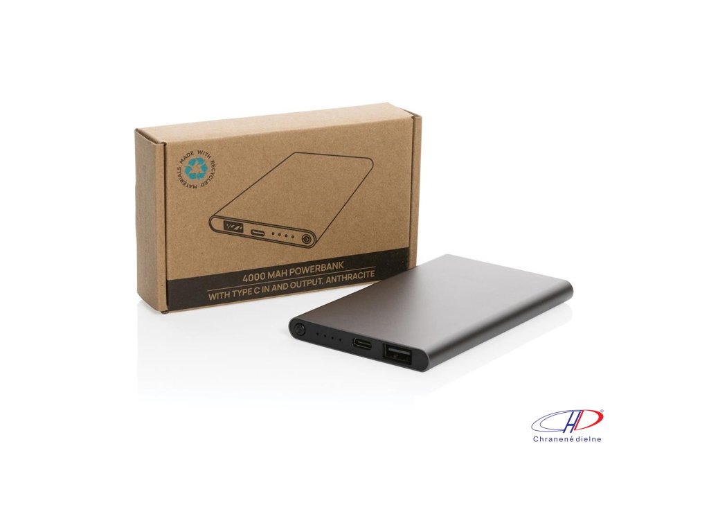Powerbanka 4000mAh s USB C z RCS plastu a hliníka , anthracite