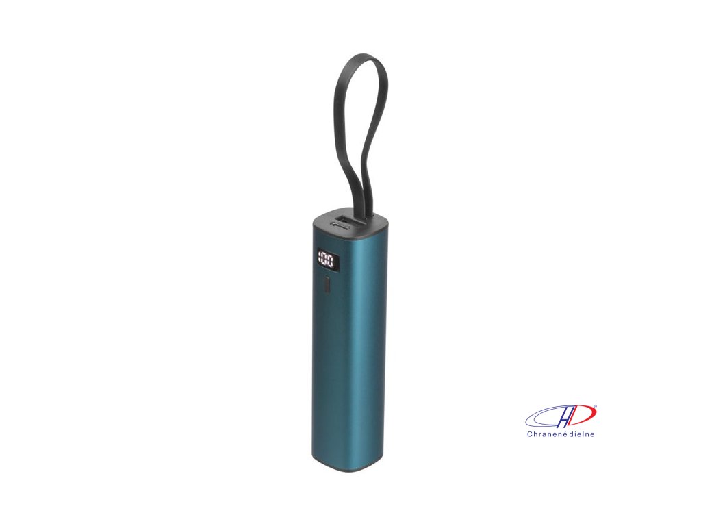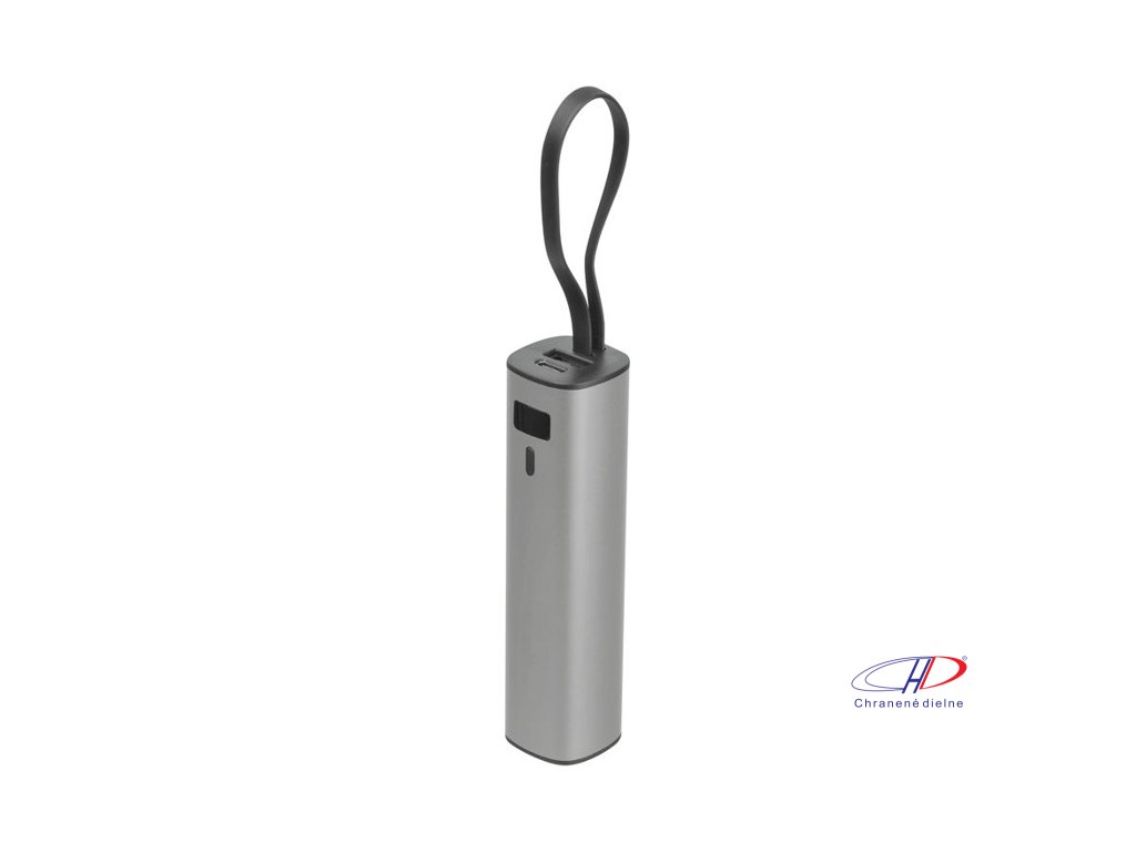 Hliníková powerbanka s lítium-iónovou batériou s kapacitou 5 000 mAh, indikátorom úrovne nabitia a integrovaným nabíjacím káblom USB-C. Súčasťou balenia je aj 30 cm nabíjací kábel typu A na C.Dodatočné parametre