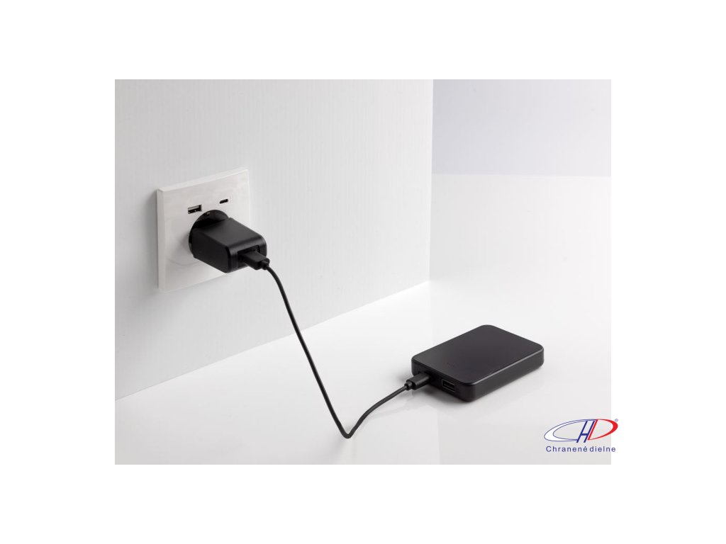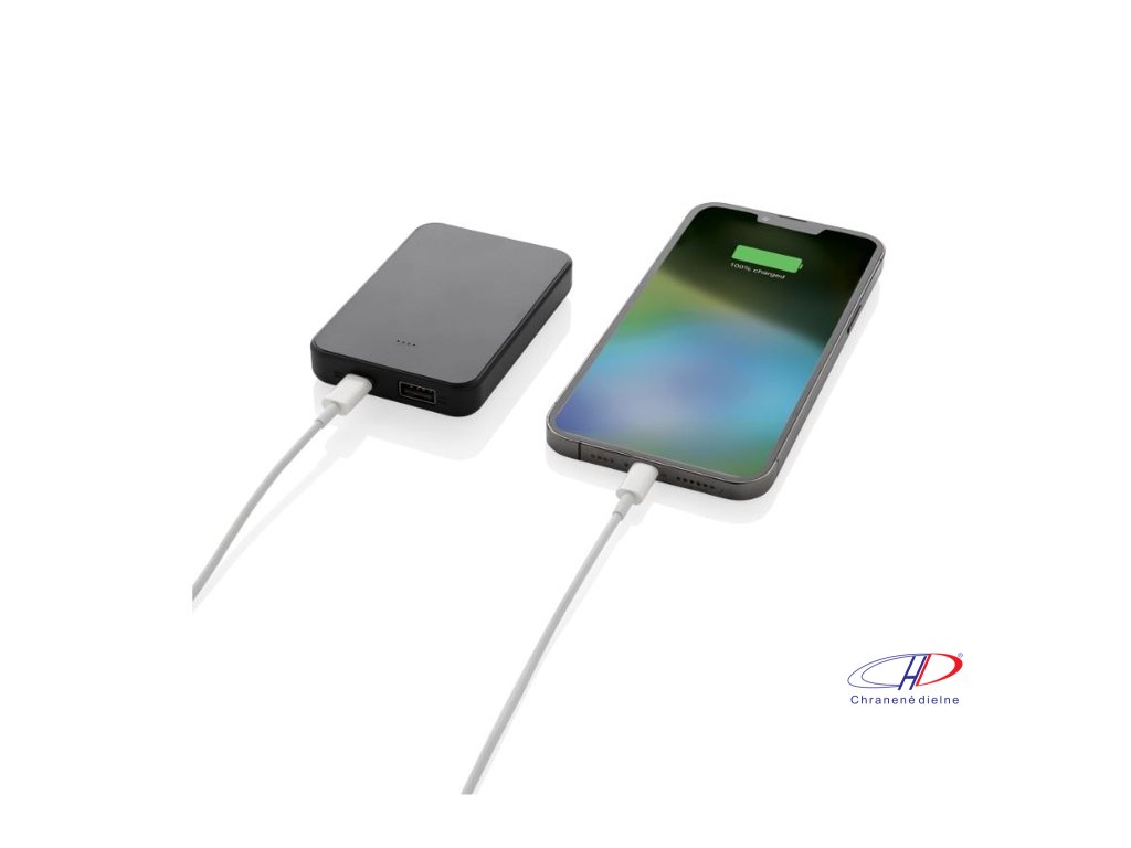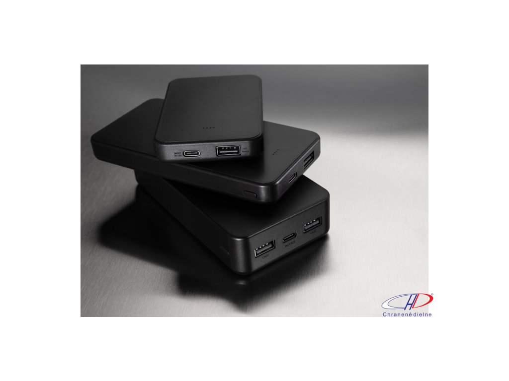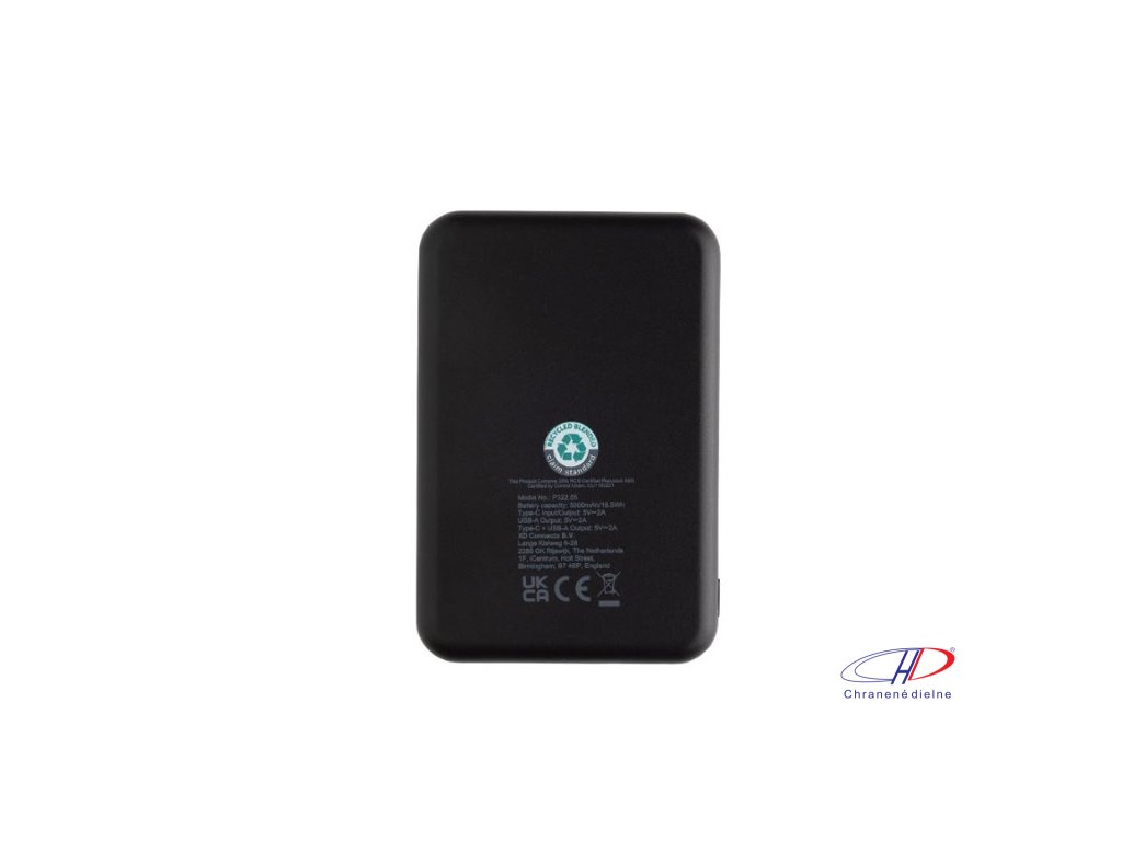 Vrecková powerbanka 5 000 mAh, vstupným/výstupným portom USB C a portom USB A. Pri plnom nabití poskytne dostatok energie na dvojnásobné dobitie telefónu. Vstup typu C 5 V/2,4 A; USB A: výstup 5 V/2,4 A, výstup typu C: 5 V/2 A. PVC free. Vrátane kábla TPE.Dodatočné parametre