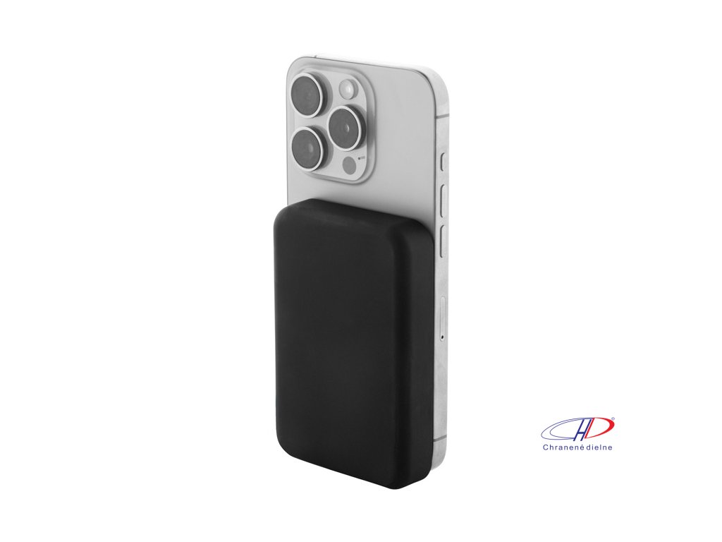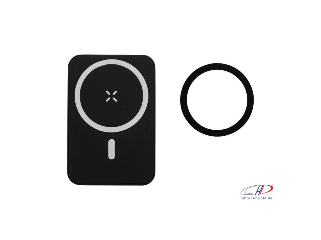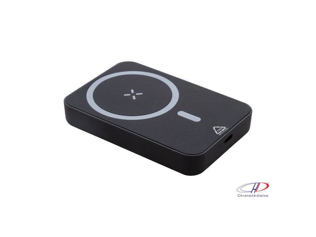 Powerbanka z recyklovaného ABS s 5000 mAh batériou a bezdrôtovou nabíjačkou 5W. So vstupom USB-C a portom pre nabíjačku. Vrátane samolepiaceho kovového krúžku. Kompatibilný s iPhone® 12 alebo novším. Vrátane USB nabíjacieho kábla.Dodatočné parametre