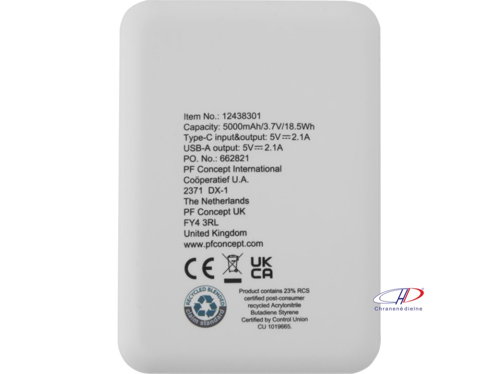 Powerbanka 5000mAh z recyklovaného plastu , white
