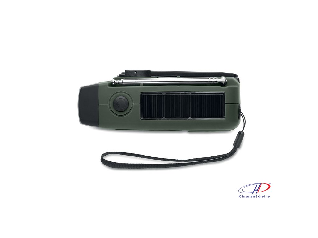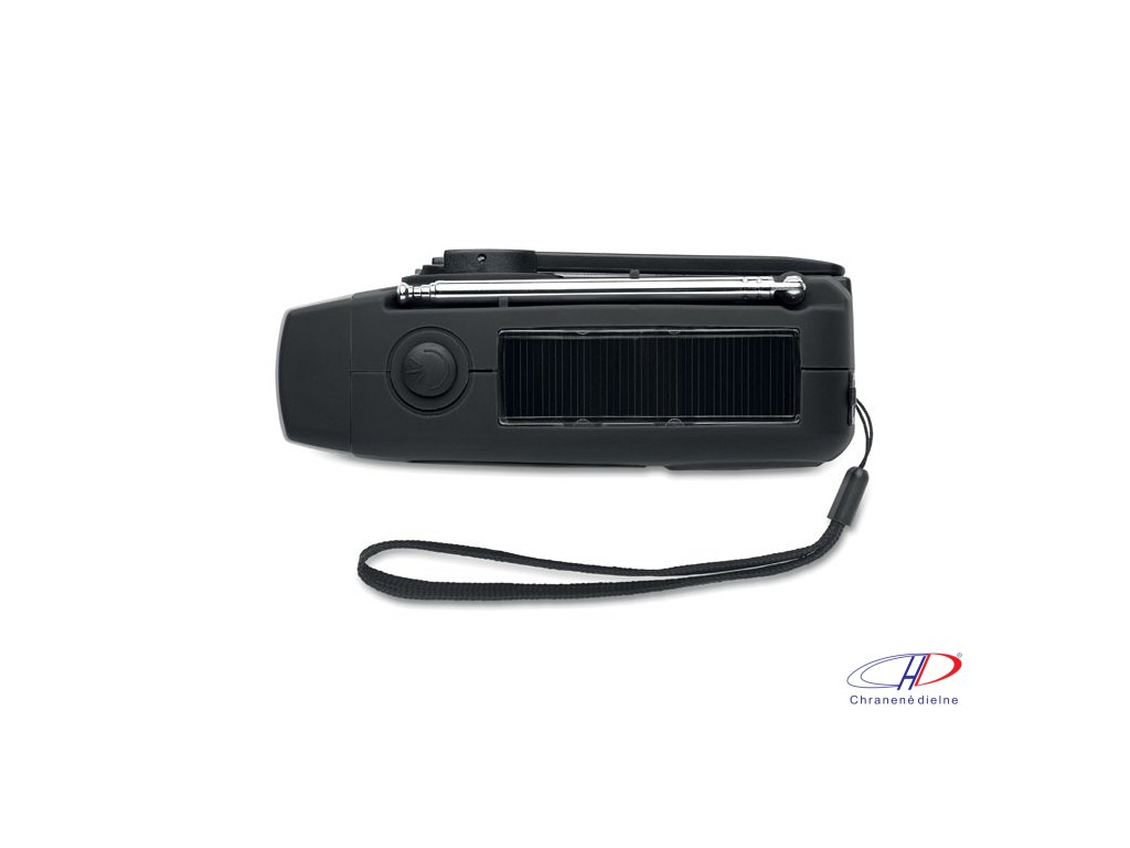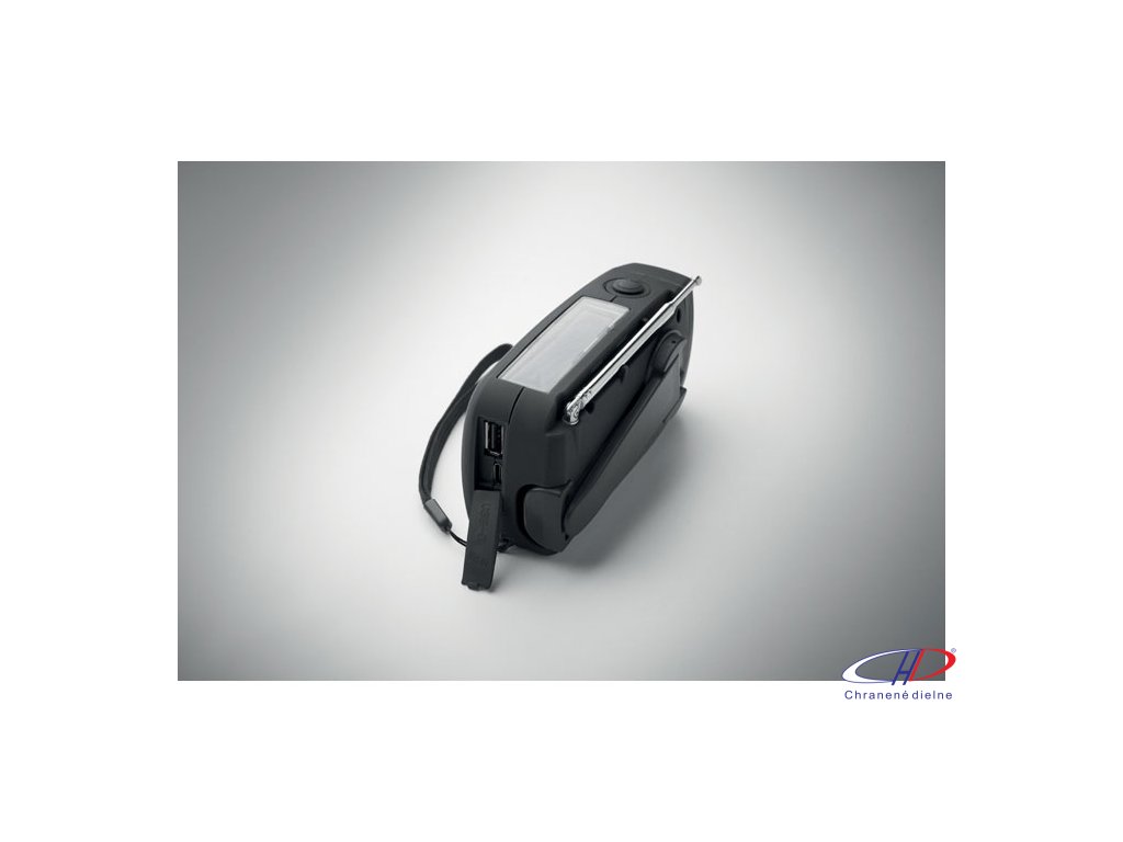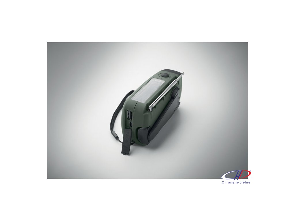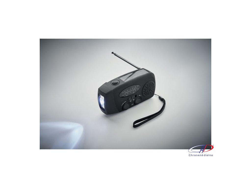 Prenosné AM/FM rádio z ABS plastu s LED baterkou (2 nastavenia) a 1200 mAh powerbankou pre núdzové nabíjanie. Samostatné napájanie solárnou energiou a ručnou kľukou.Dodatočné parametre
