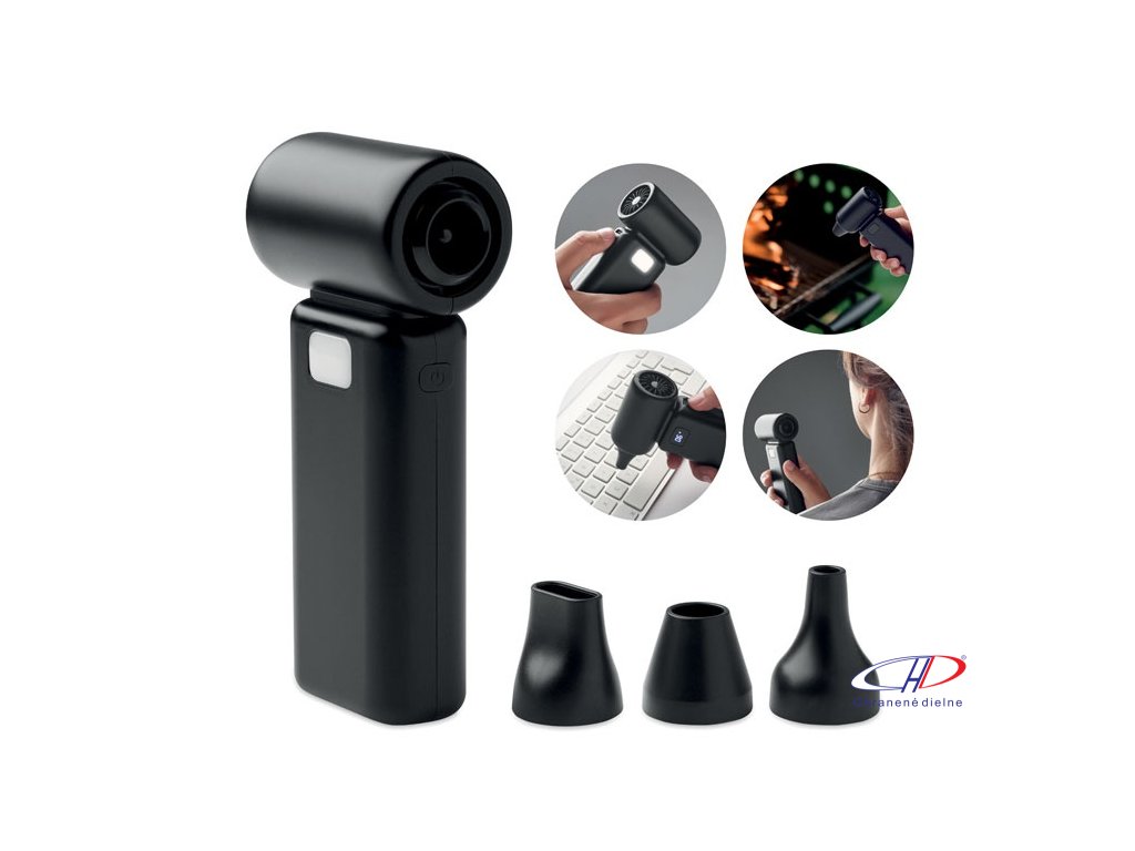 Prenosný turbo ventilátor s 3 LED osvetlením a 4 nastaveniami rýchlosti až do 130 000 ot./min. Batéria 6 000 mAh a rýchlosť 23 m/s. Toto zariadenie môžete použiť ako vysávač prachu, fúkač, ventilátor alebo fén.Dodatočné parametre