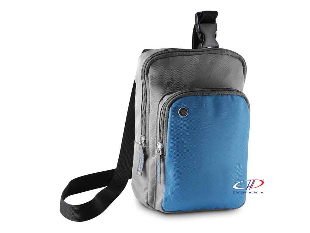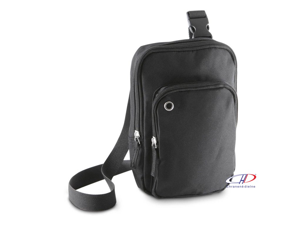 Nastaviteľný ramenný popruh. Hlavná priehradka s príveskom na kľúče. Predné vrecko na zips a zadné vrecko.