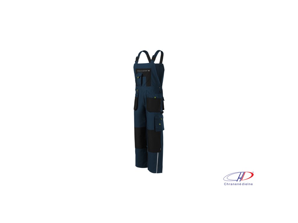 pružná guma v zadnej časti pásového goliera, zapínanie na gombíky v bočnej časti, traky s elastickým dielom nastaviteľné prackou, 14 multifunkčných vreciek, zdvojený materiál v oblasti kolien, plastové "D" pútko a karabína na kľúče a ID karty, pútko na kladivo, dvojté prešitie pre vyššiu odolnosť, vysoko odolný materiál CORDURA® vo farbe 01, retroreflexné prvkyDodatočné parametre