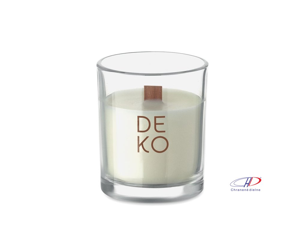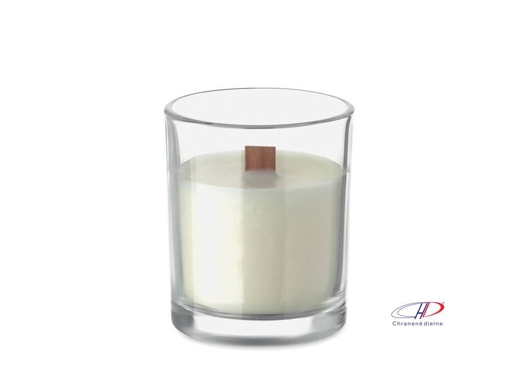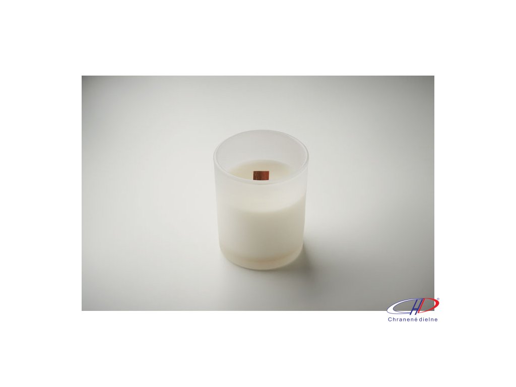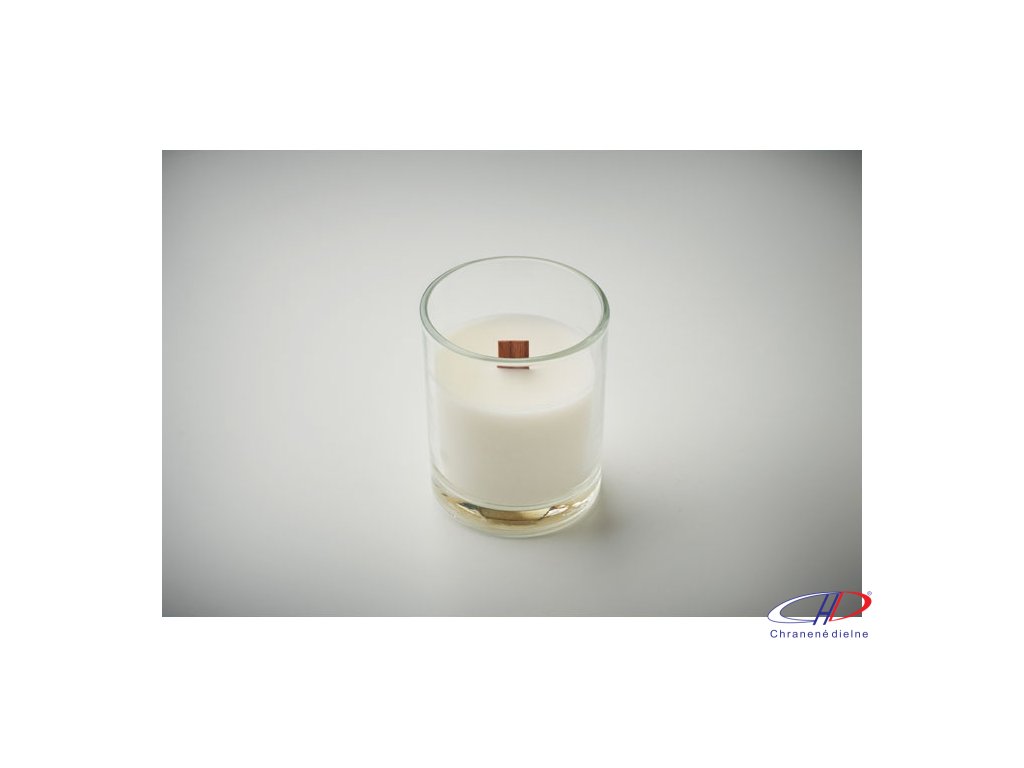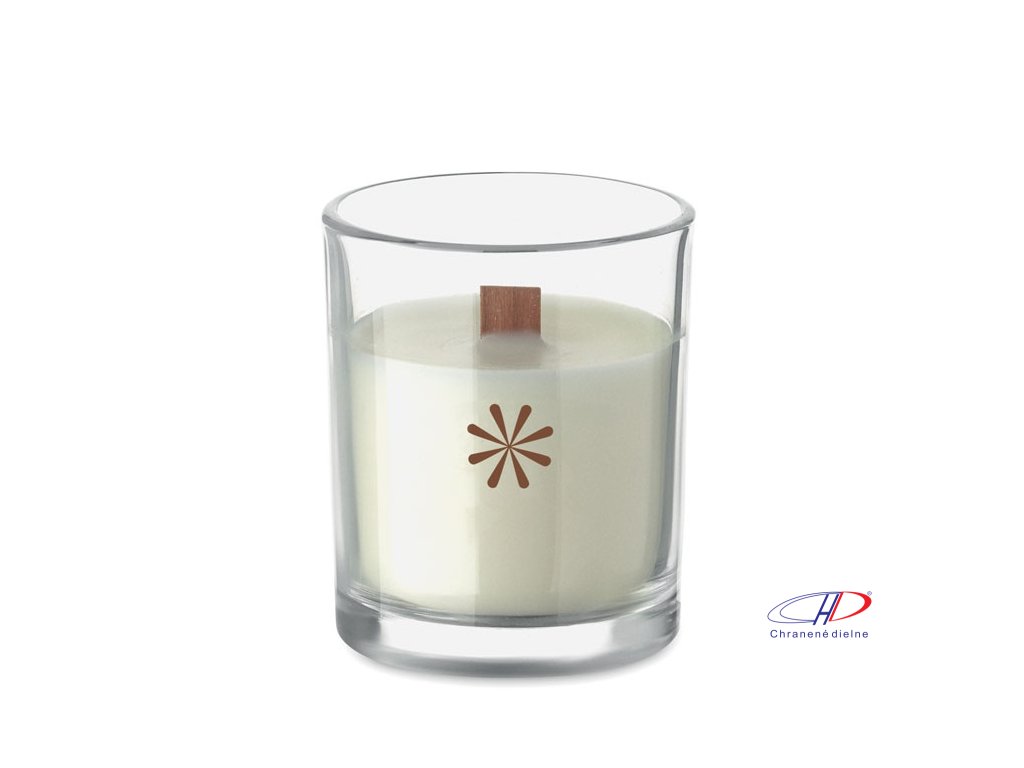 Sviečka z rastlinného vosku s vôňou vanilky, 80 g, v skle s dreveným knôtom. Doba horenia 14 hodín.Dodatočné parametre