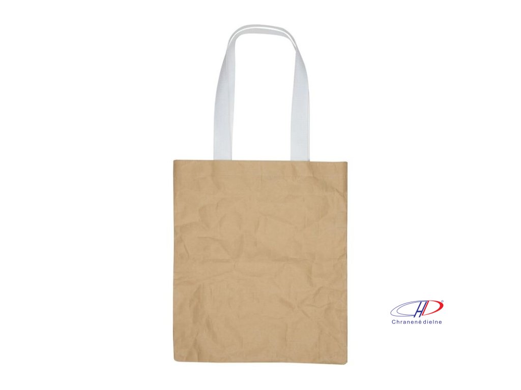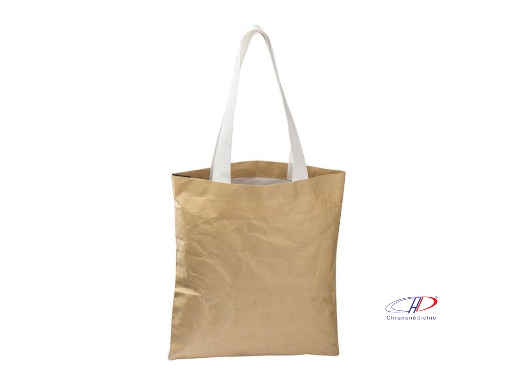 Robustná nákupná taška s dlhými rúčkami, polstrovaným vnútrom a vonkajšou papierovou podšívkou, odolná a ekologická.