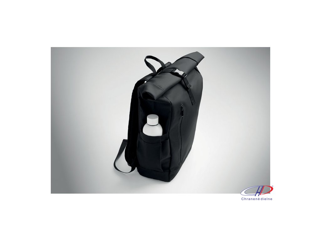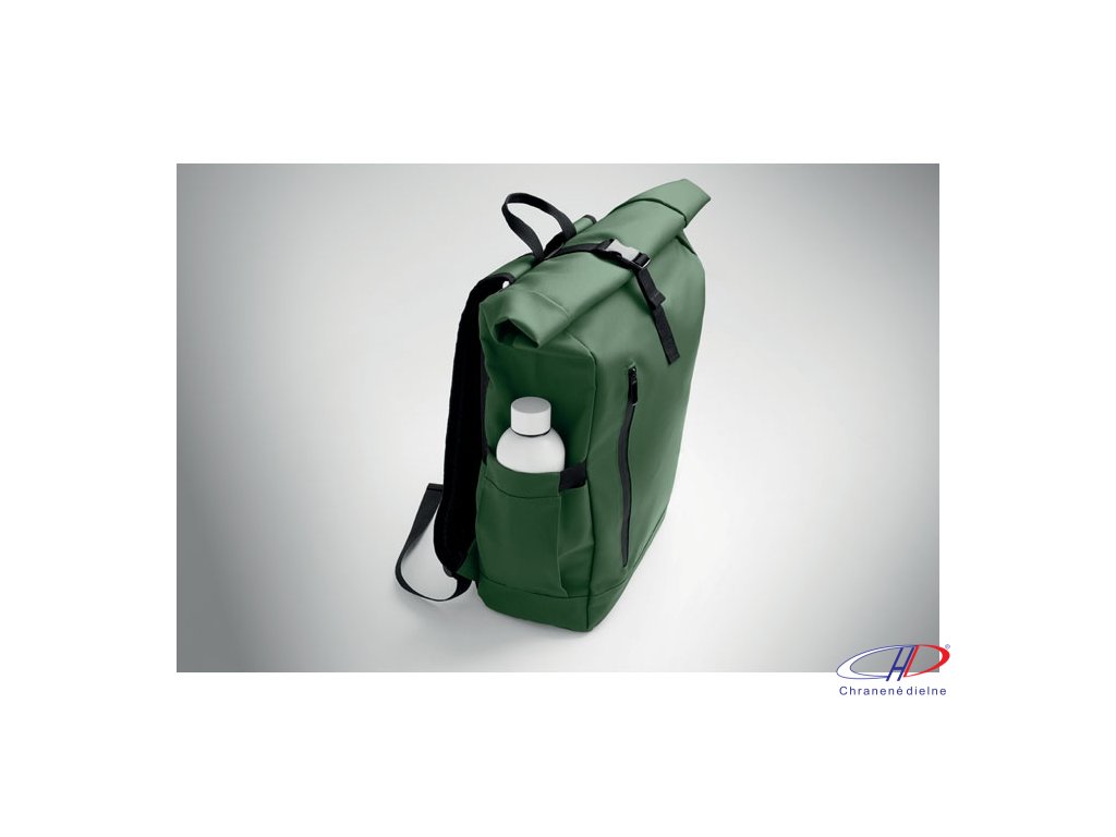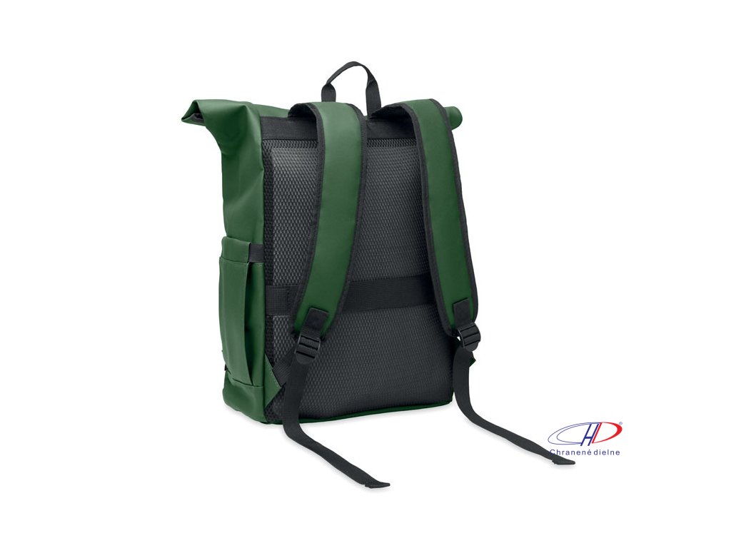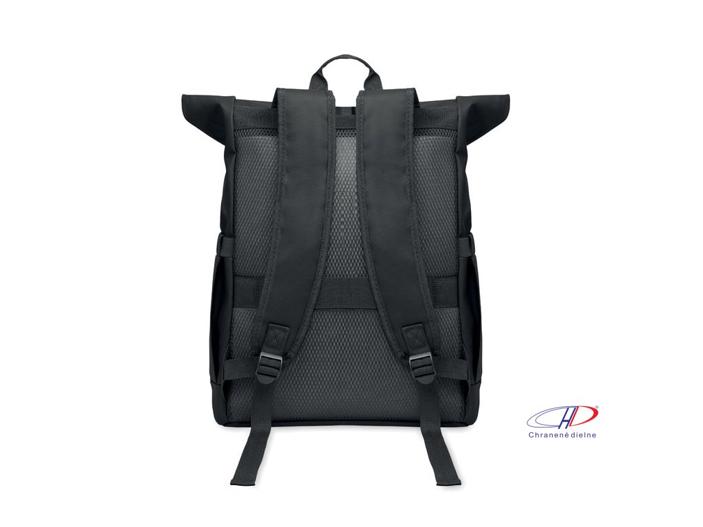 Batoh na 15-palcový notebook s rolovacím vrchom z polyesteru 600D RPET s PU povrchovou úpravou a podšívkou z polyesteru RPET. Polstrovaný chrbát zo sieťoviny s vreckom na zips a popruhom na kufor. Polstrovaný ramenný popruh s vnútornou sieťovanou úpravou.Dodatočné parametre