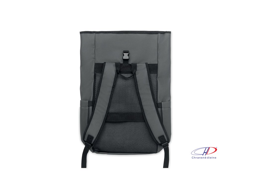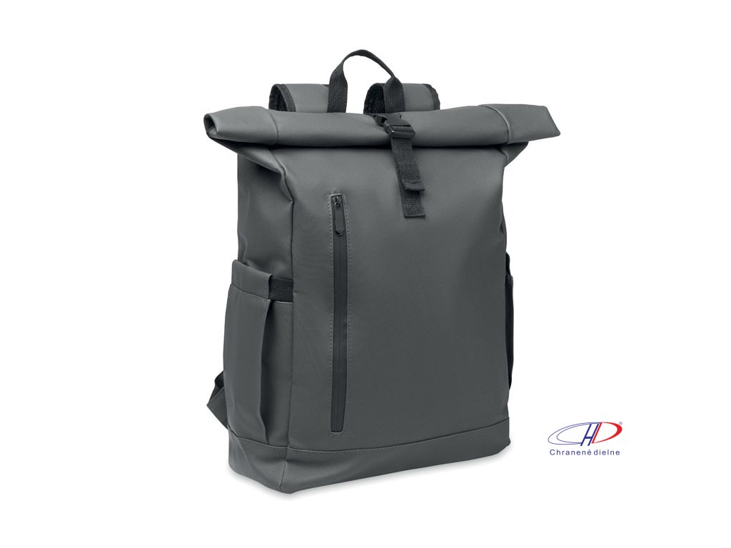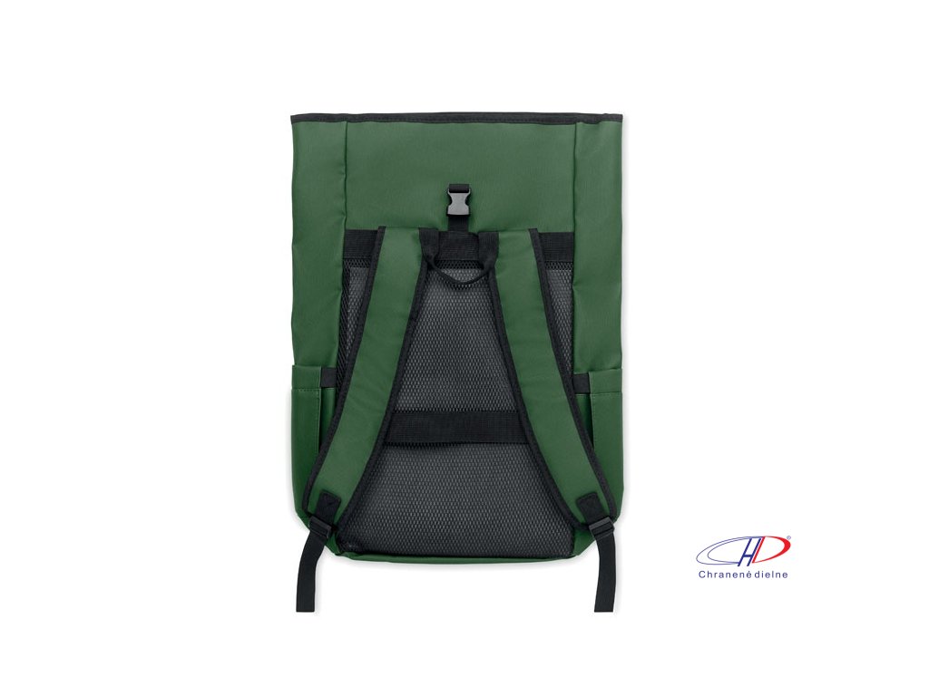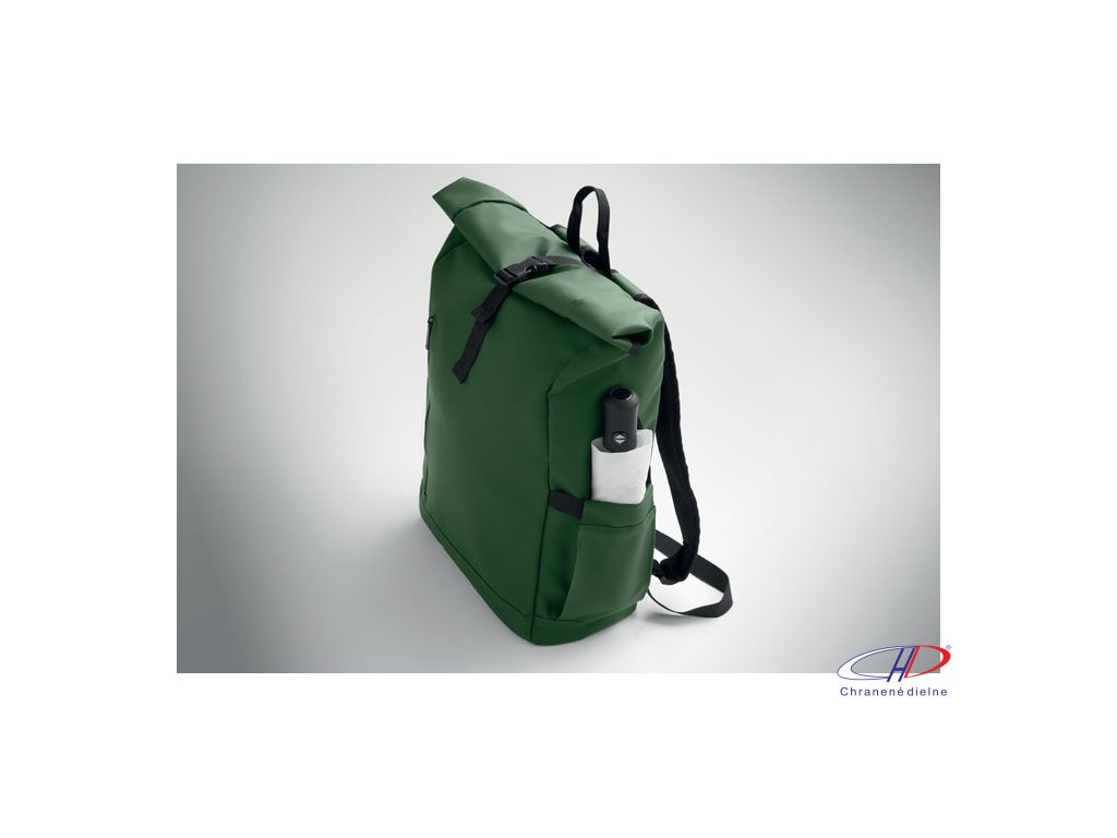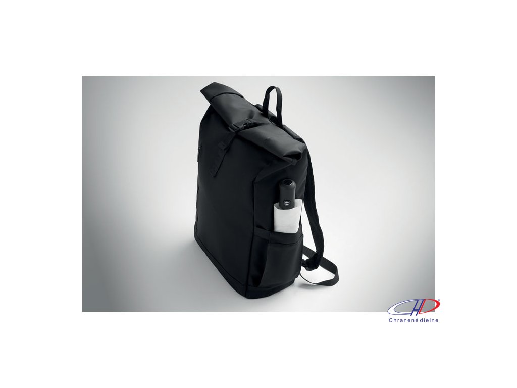 Batoh na 15-palcový notebook s rolovacím vrchom z polyesteru 600D RPET s PU povrchovou úpravou a podšívkou z polyesteru RPET. Polstrovaný chrbát zo sieťoviny s vreckom na zips a popruhom na kufor. Polstrovaný ramenný popruh s vnútornou sieťovanou úpravou.Dodatočné parametre