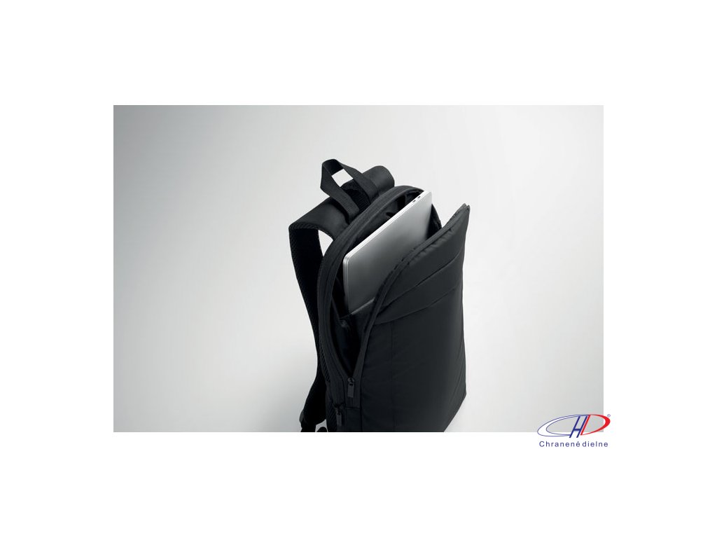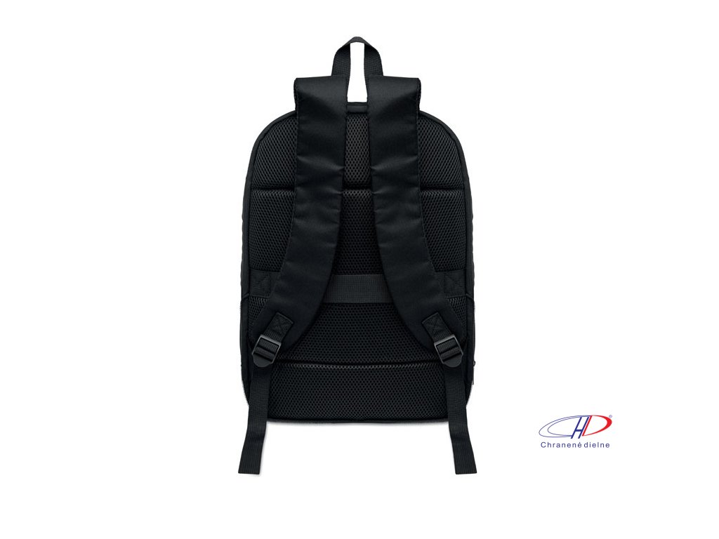 Rozšíriteľný 16-palcový počítačový batoh z 600D RPET polyesteru s PU záterom na prednej strane a podšívkou z RPET polyesteru. Skryté vrecko na zips a polstrovaná priehradka na notebook, predná priehradka, sieťovaný chrbát a popruh na kufor.Dodatočné parametre
