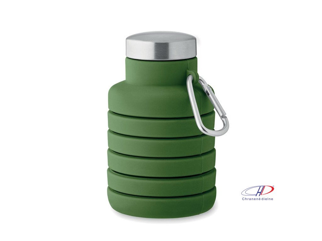 Skladacia silikónová fľaša s nerezovým viečkom a hliníkovou karabínou. Karabína nie je určená na lezenie. Kapacita: 500 ml.Dodatočné parametre