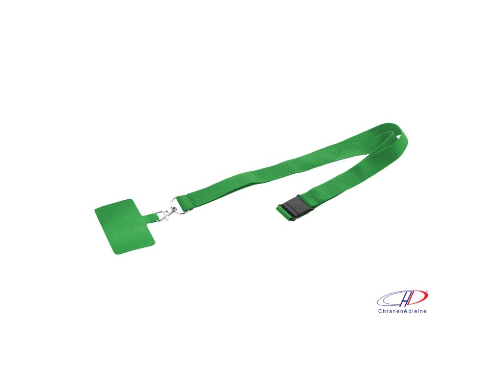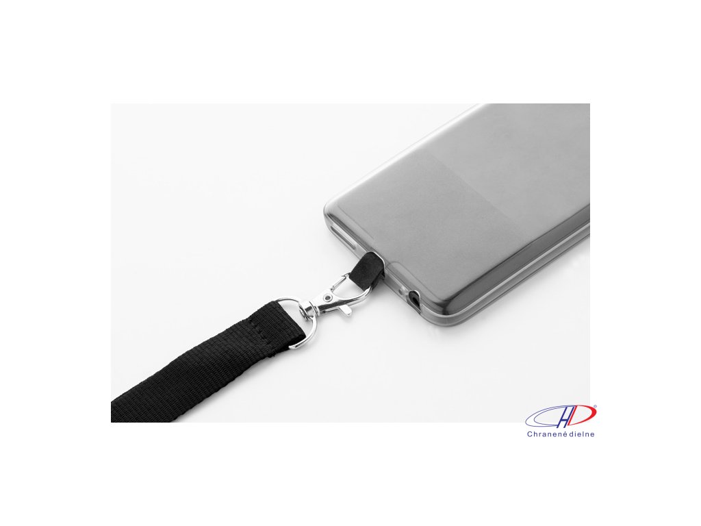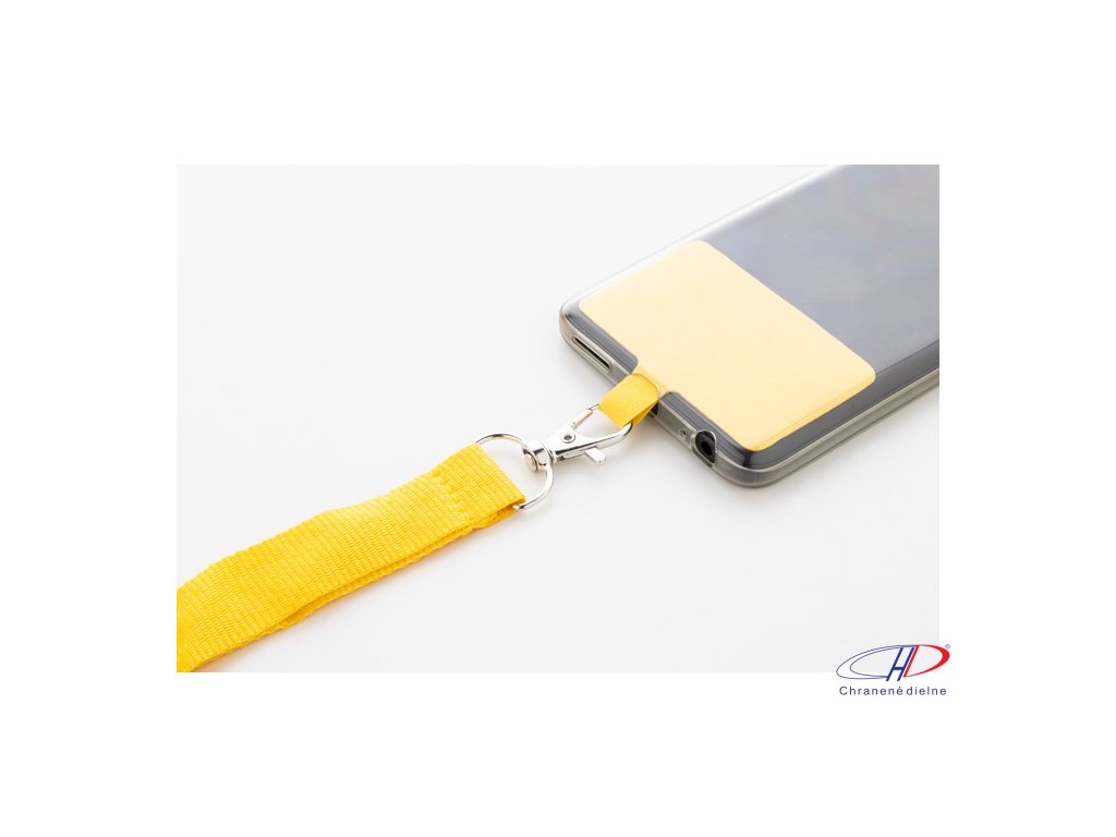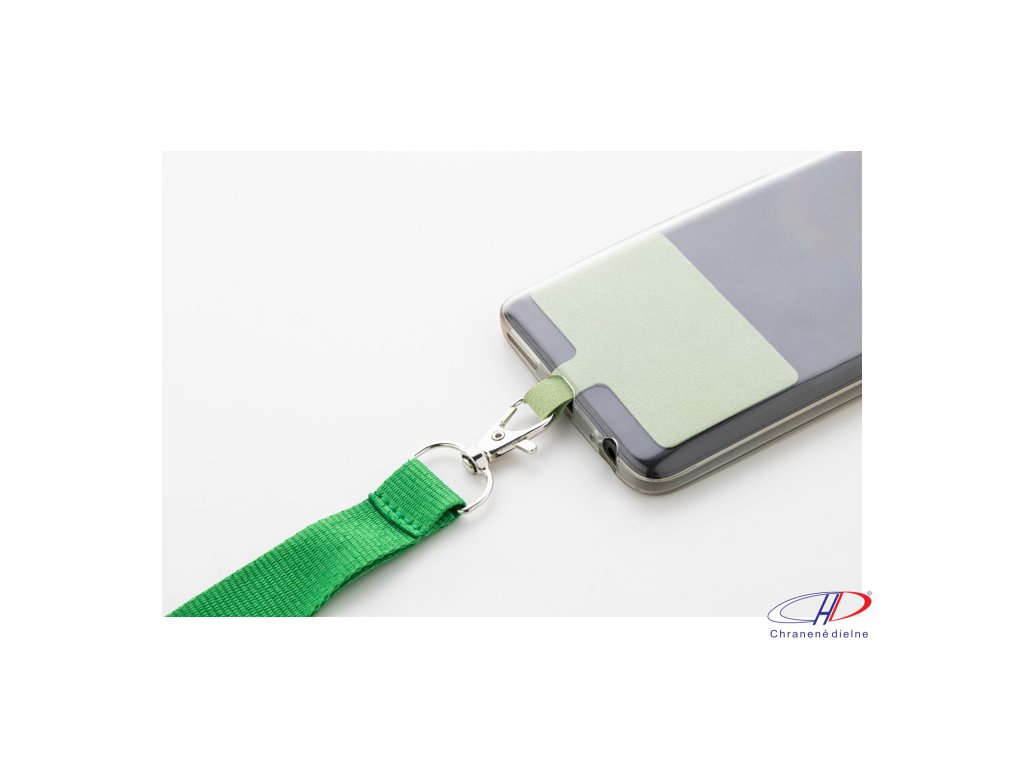 RPET lanyard na mobil s kovovou karabínou, bezpečnostnou prackou a vložkou na telefón v rovnakej farbe.Dodatočné parametre