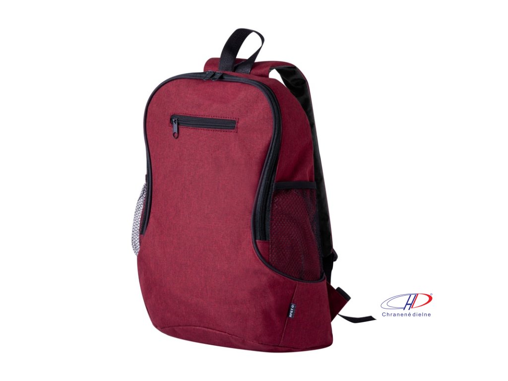 Batoh RPET s priehradkou na zips a predným vreckom, bočné sieťované vrecká, polstrovaný chrbát a ramenné popruhy. 300D RPET polyester s výrazným štítkom RPET.