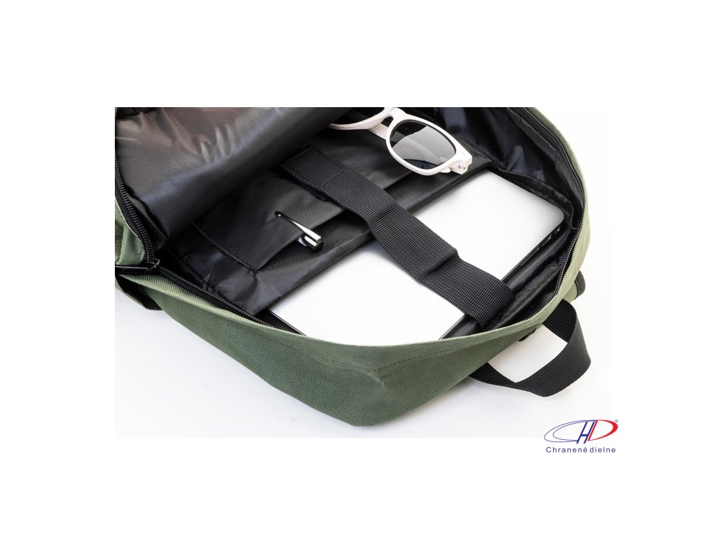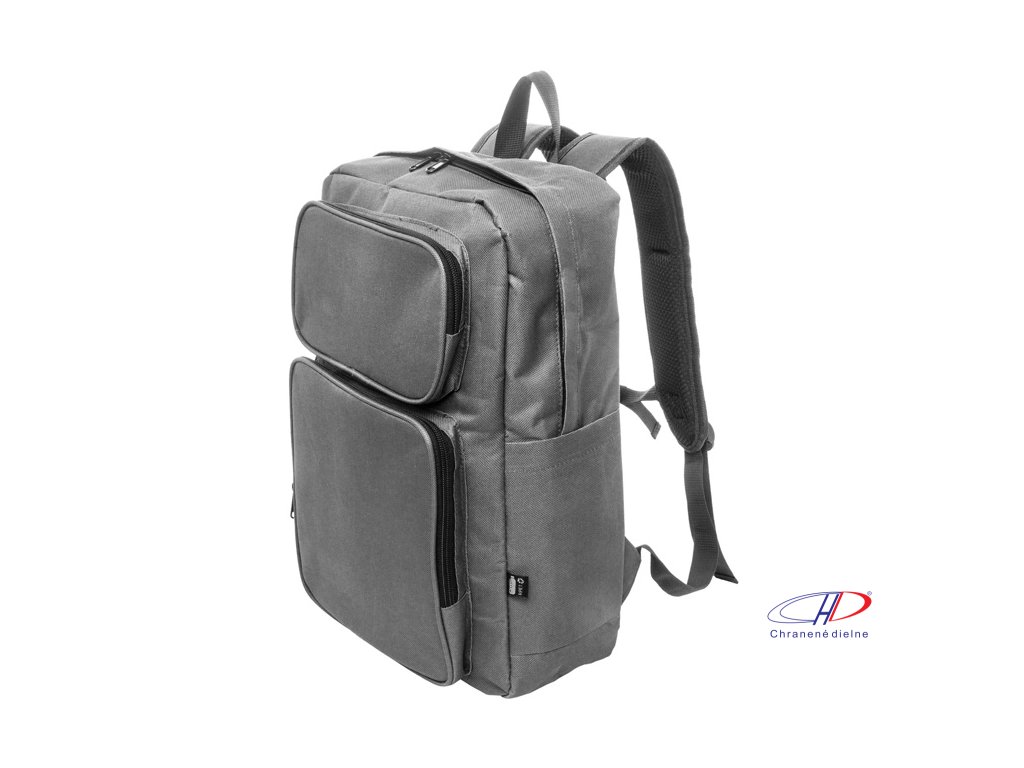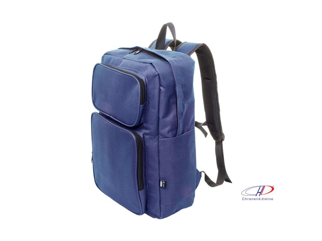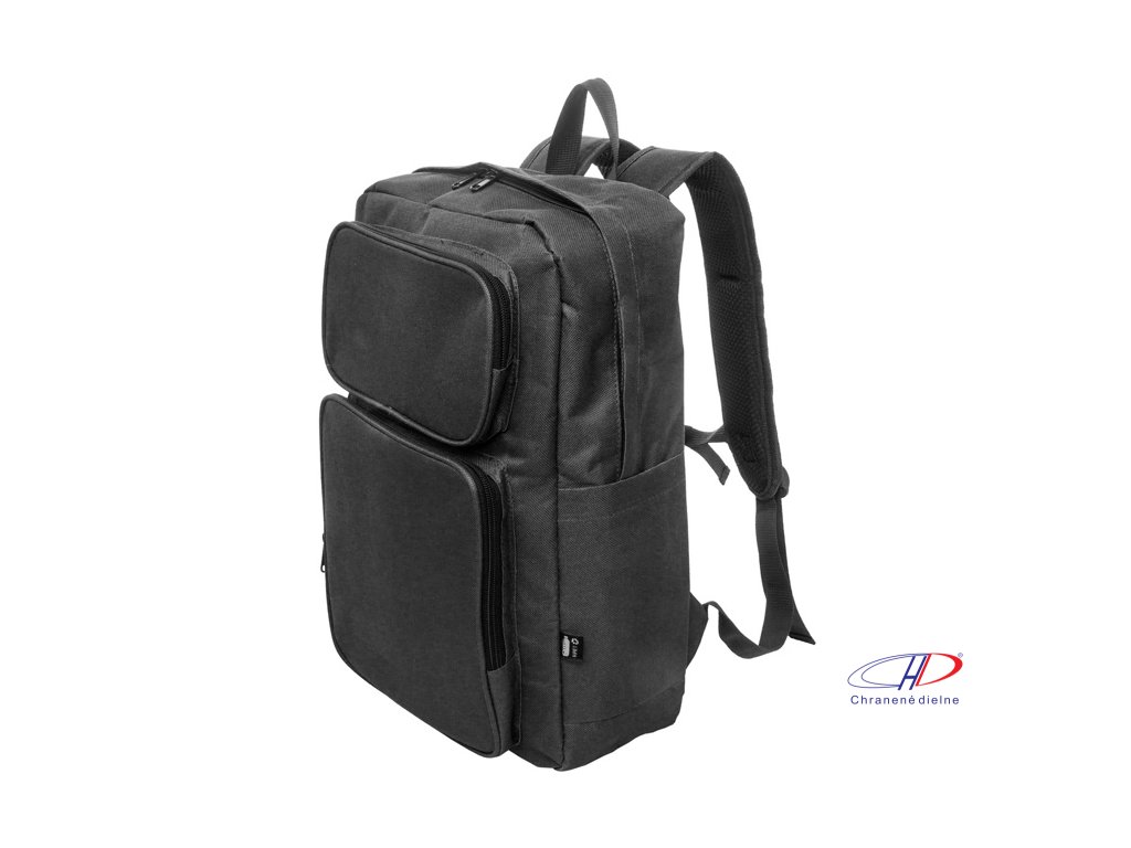 Batoh RPET s hlavným oddielom na zips, 2 prednými vreckami na zips, bočnými vreckami a polstrovanou priehradkou na notebook (15") a tabliet (10") S polstrovaným chrbtom a ramennými popruhmi. Polyester 600D RPET, s výrazným štítkom RPET.Dodatočné parametre