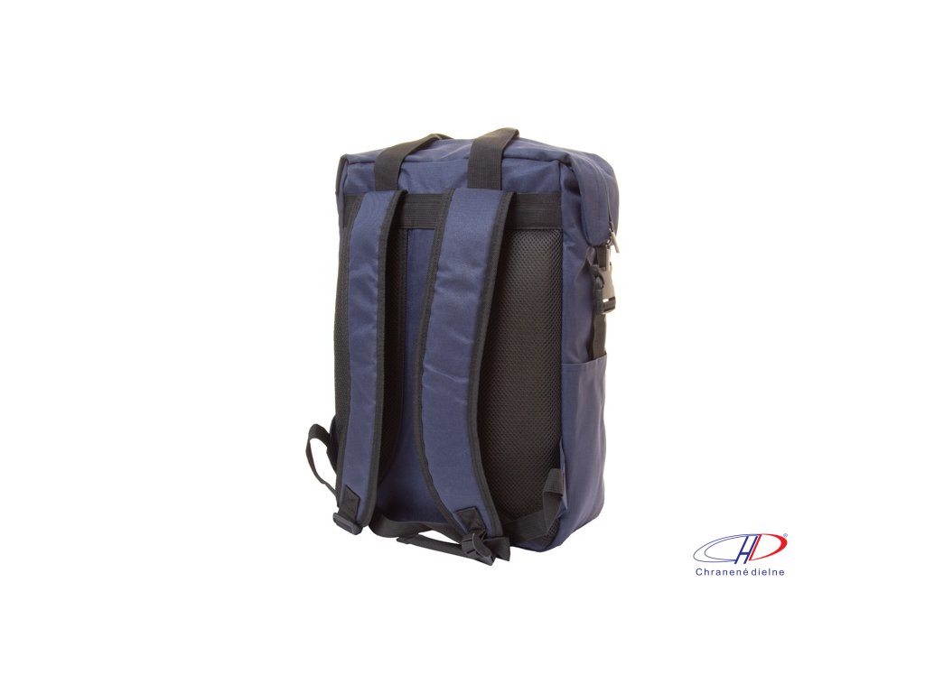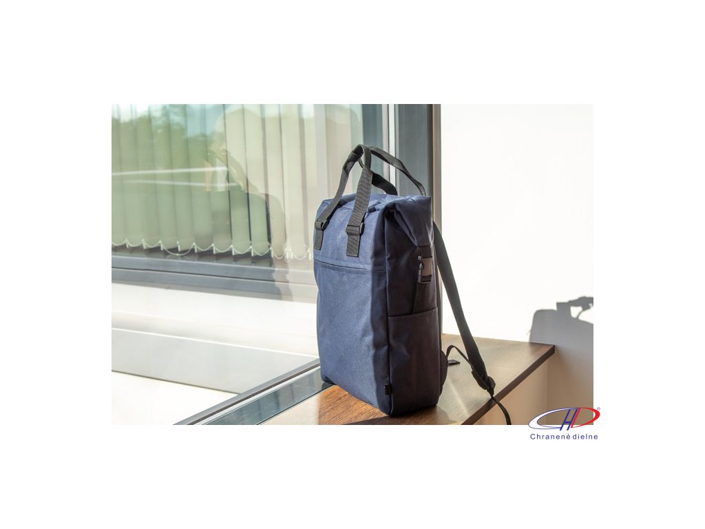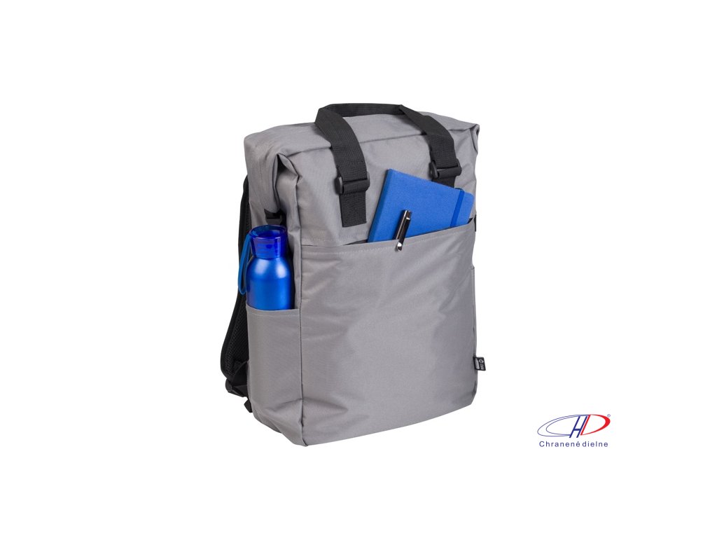 Ruksak s hlavnou priehradkou na zips a predným vreckom, polstrovanou priehradkou na notebook (15") a tablet (10"), bočnými popruhmi a vreckami na pracky, polstrovaný chrbát a ramenné popruhy. 600D RPET polyester.Dodatočné parametre