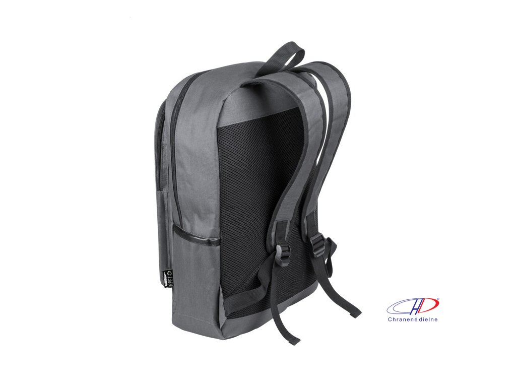 Batoh RPET s hlavným oddielom na zips, 2 prednými vreckami na zips, bočnými vreckami a polstrovanou priehradkou na notebook (15"). S polstrovaným chrbtom a ramennými popruhmi. Polyester 600D RPET, s výrazným štítkom RPET.Dodatočné parametre