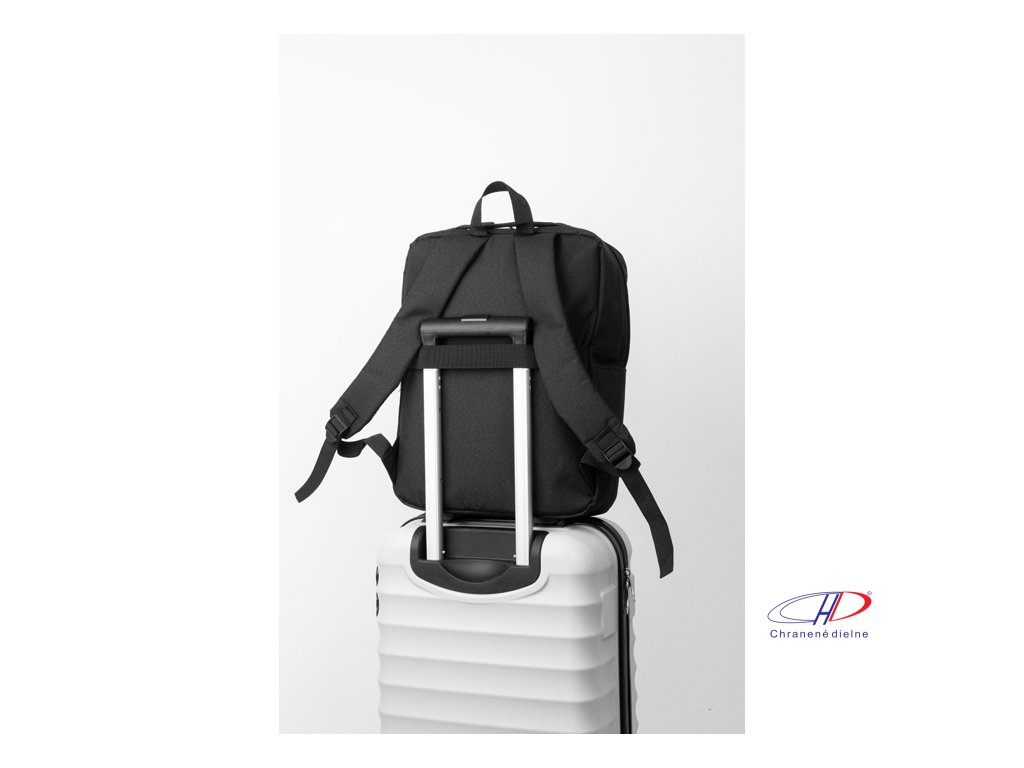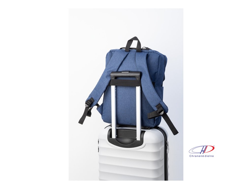 Batoh RPET s hlavným oddielom na zips, 2 vreckami na zips, bočným vreckom a polstrovanou priehradkou na notebook (15"). S popruhom na vozík, polstrovaným chrbtom a ramennými popruhmi. Polyester 600D RPET, s výrazným štítkom RPET.Dodatočné parametre
