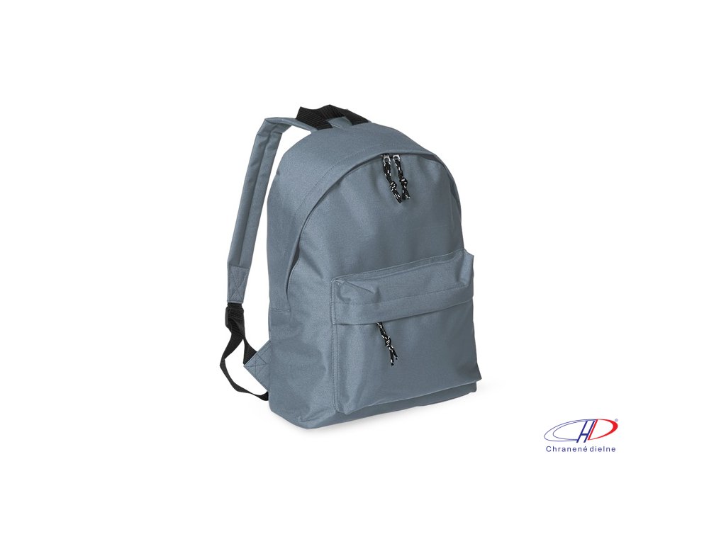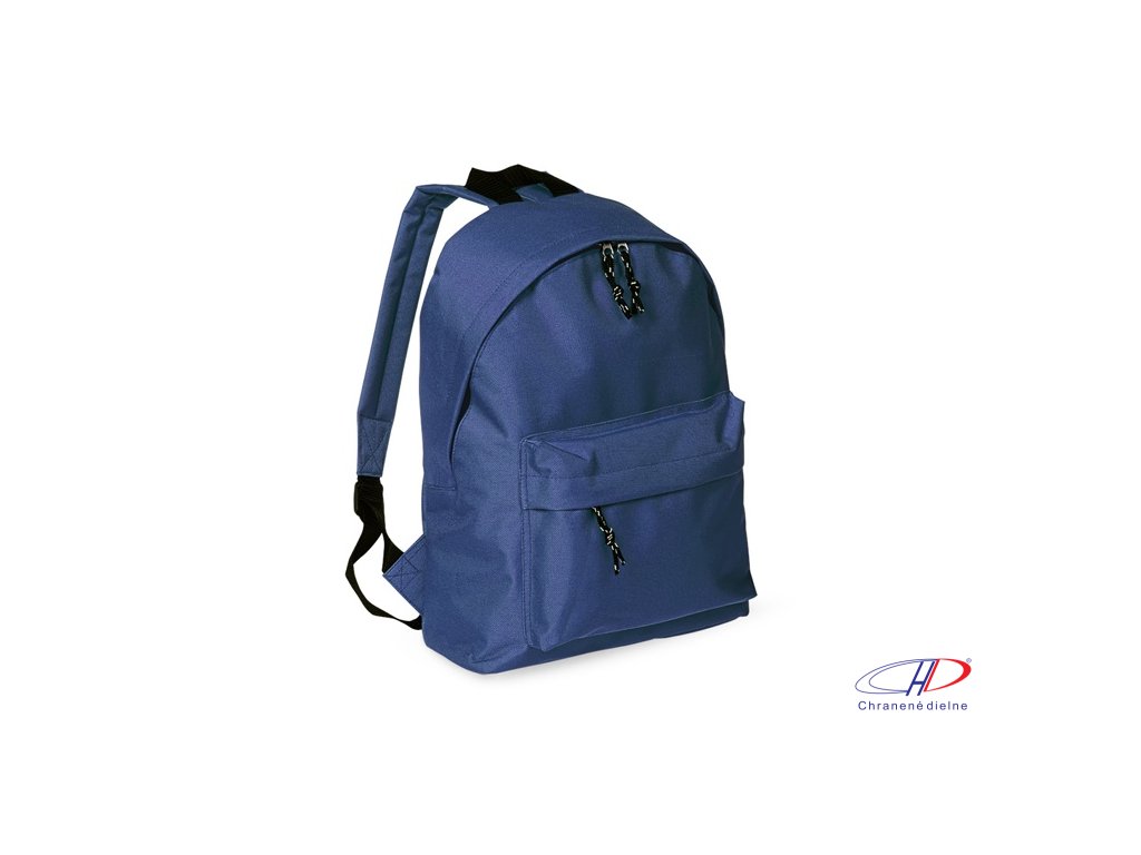 Ruksak s jedným predným vreckom a vystuženou chrbtovou časťou a ramennými popruhmi. Polyester 600D.