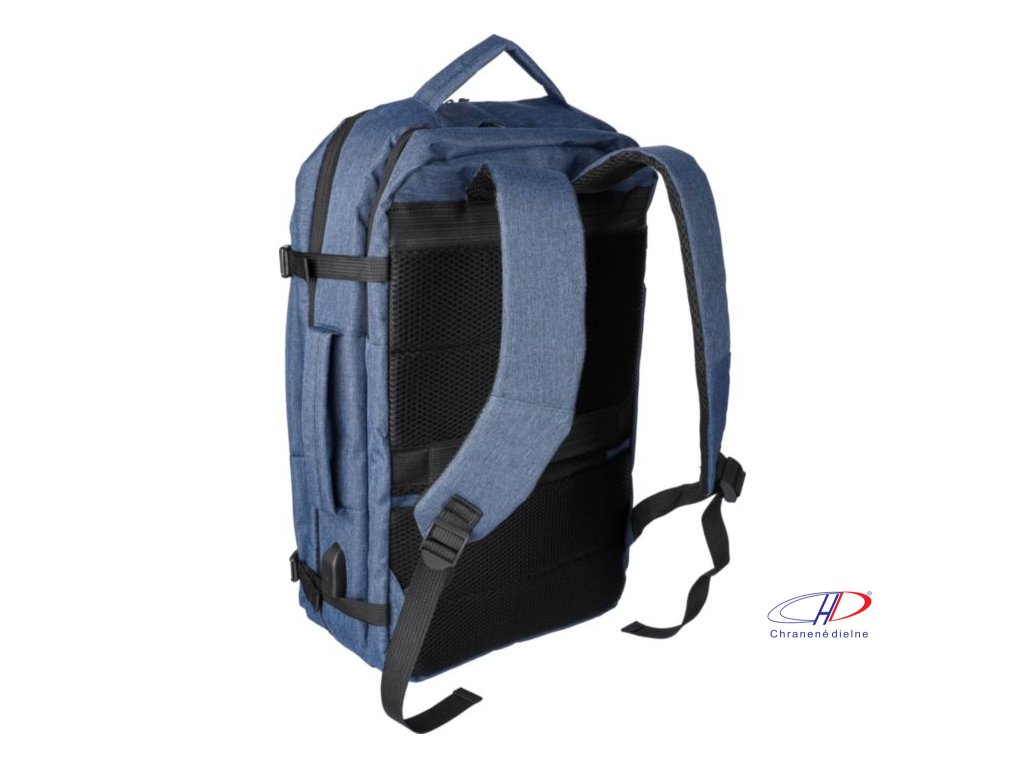Batoh a taška na notebook (17 palcov) s pútkom na vrchu a po stranách. Priestor na notebook na suchý zips, vrecko proti krádeži a dve priehradky na zips. Odvetraná polstrovaná podložka, popruh na kufor, USB-A port na boku. Nosnosť 12 kg. Štítok RPET.