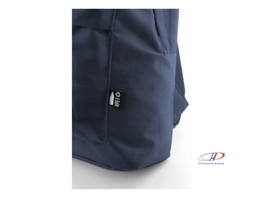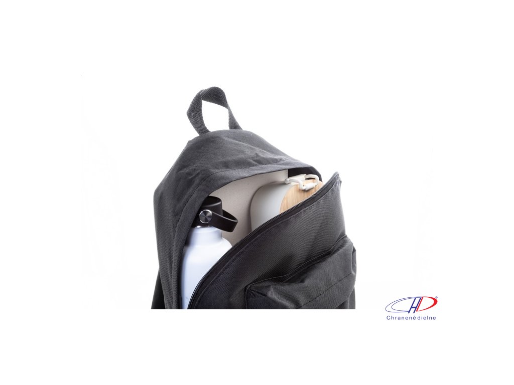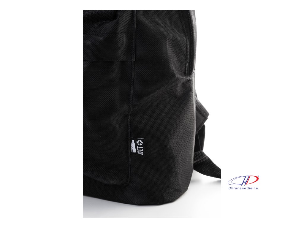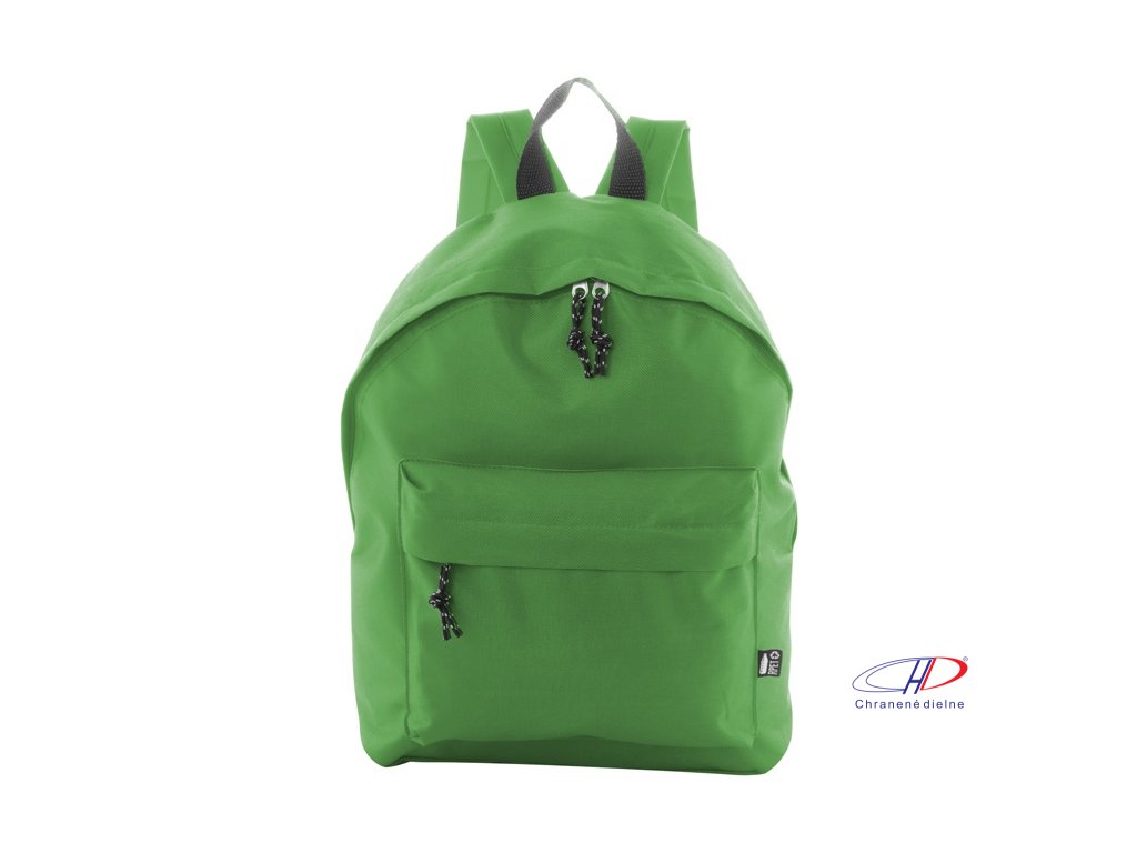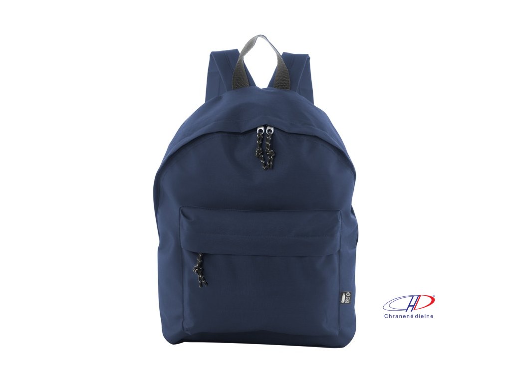 RPET batoh s hlavným priestorom na zips, predným vreckom na zips, polstrovaným chrbtom a ramennými popruhmi. Polyester 600D RPET, s výrazným štítkom RPET.Dodatočné parametre