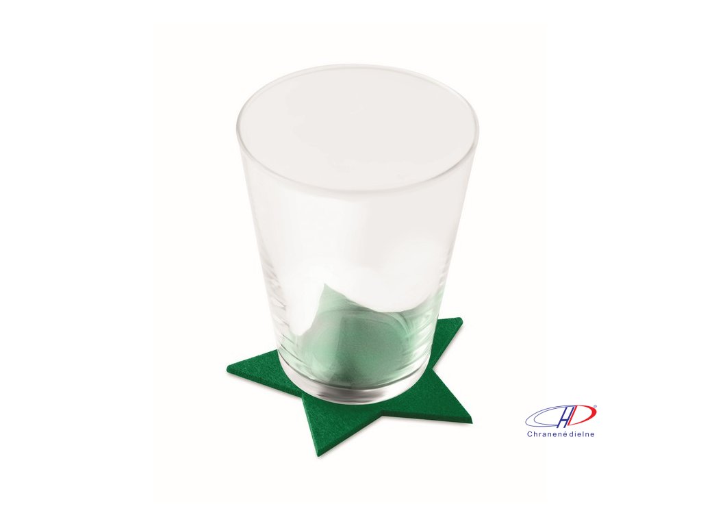 Súprava 4 RPET plstených podtáckov v tvare hviezdy. Balené v kraftovej krabičke.