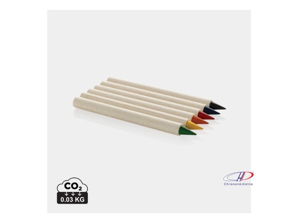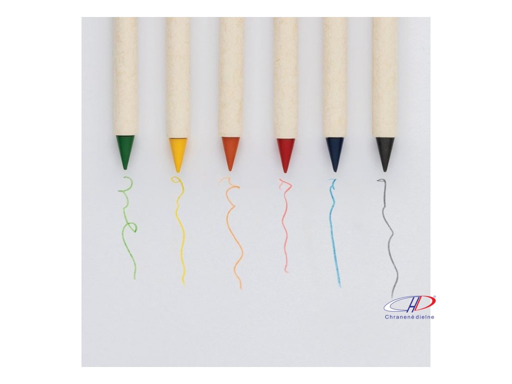 Sada obsahuje 6 pasteliek (červená, žltá, modrá, zelená, oranžová a čierna), každá s dĺžkou 9 cm. Pastelky majú hladký grafitový hrot. Balené v krabičke FSC®. Pastelky píšu až 20 000 metrov, vytvárajú hladkú linku a dajú sa ľahko vygumovať.Dodatočné parametre