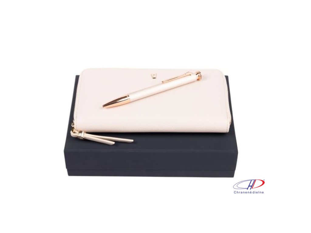 Dámska sada v darčekovom balení obsahuje guľôčkové pero (čierna náplň) a peňaženku.